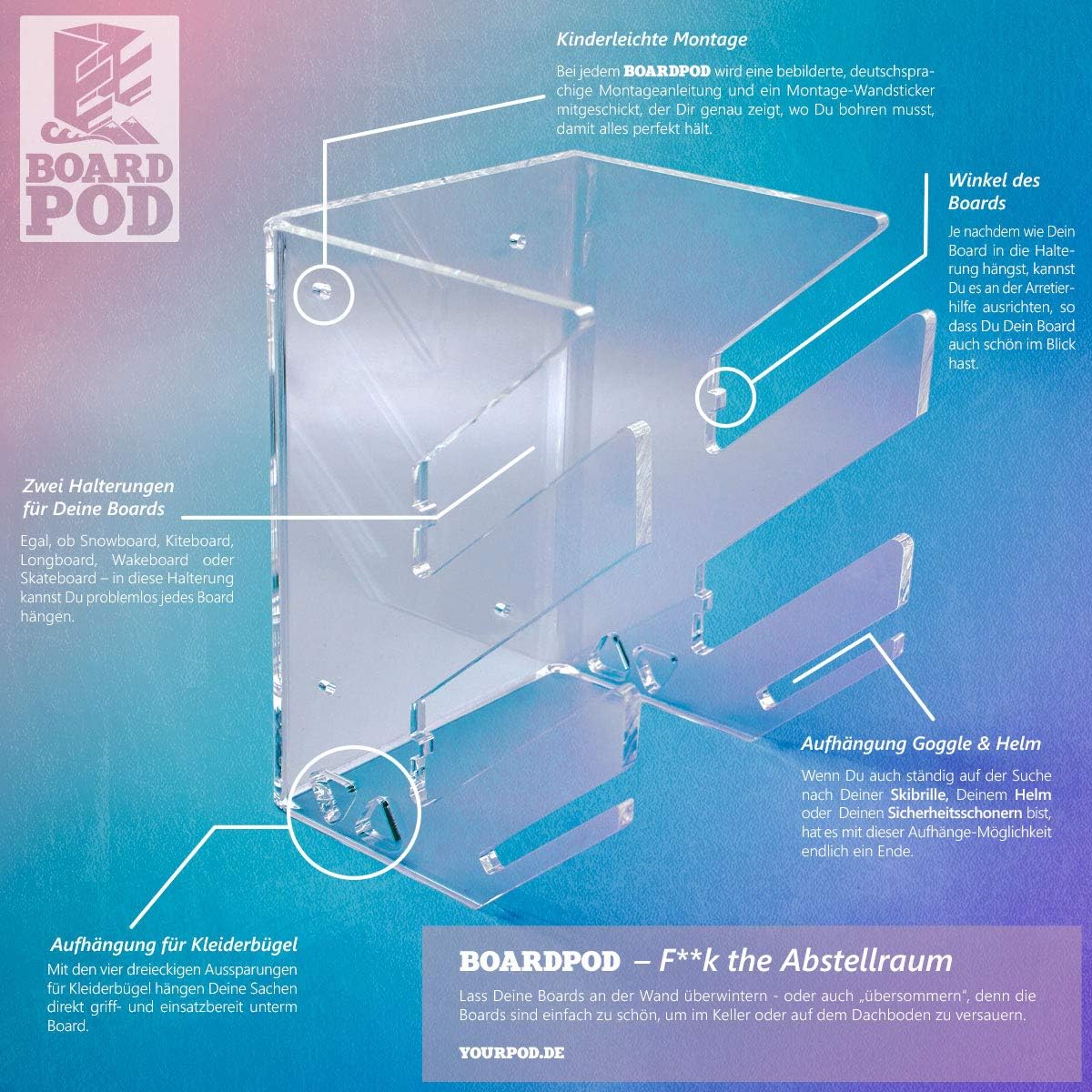 - BOARDPOD TWIN Wandhalterungen für z.B. 2 Kiteboards, Longboards, Skateboards, Skimboards, Snowboards, Wakeboards, Wakeskates