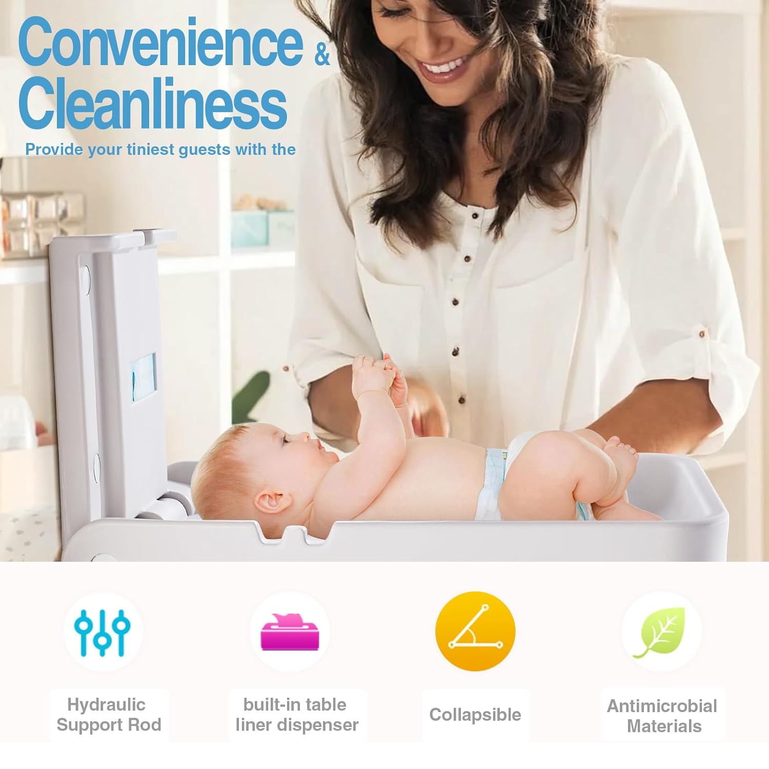 - Platzsparende Wickeltische: Die wandmontierte Wickeleinheit ist ein 90°-Falt-Design, platzsparend und einfach zu verstauen; mit einem langsamen Absenksystem - hydraulischer Stützbar, tragfähig und stark, selbst wenn Sie Ihr Baby mit einer Hand halten,
