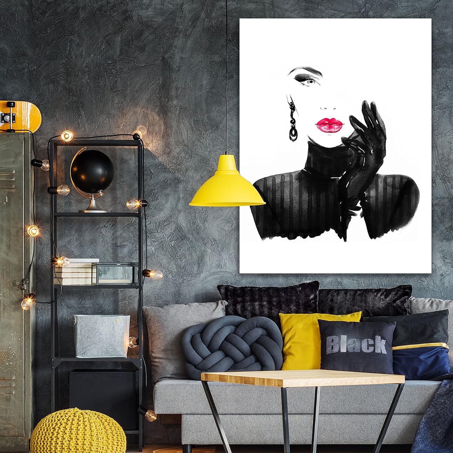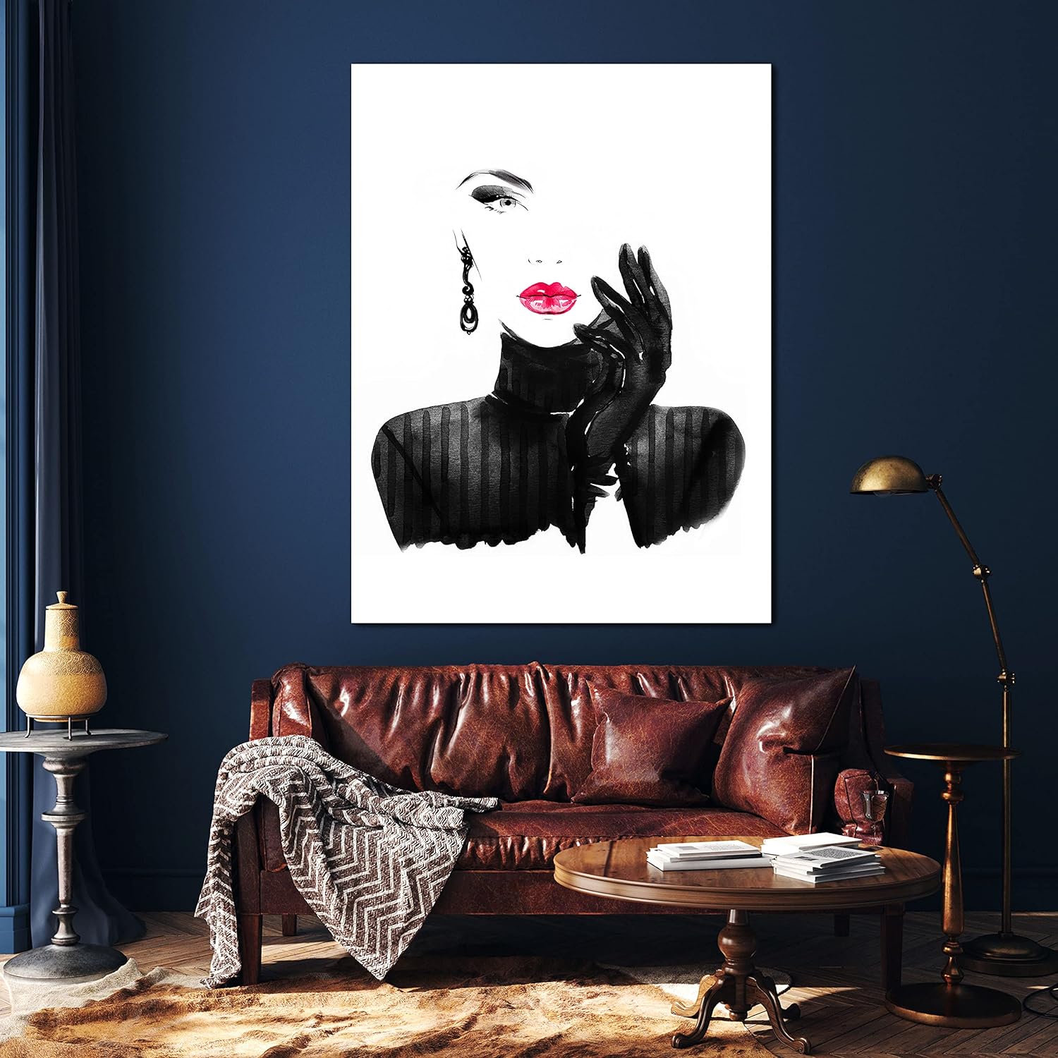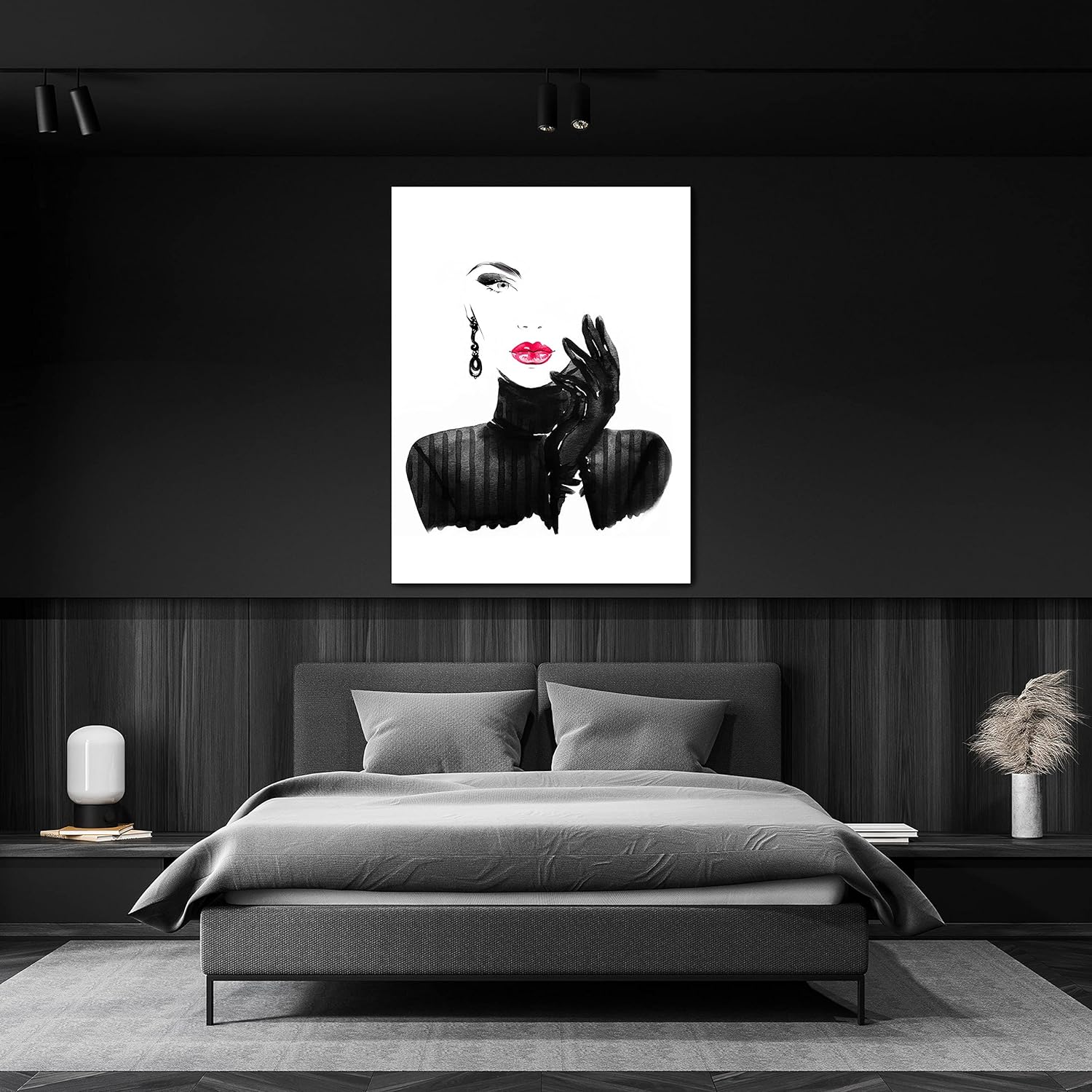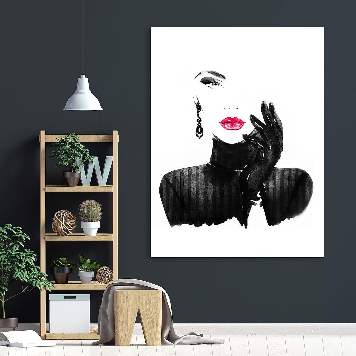 wandmotiv24 Deko Wandbild aus Acrylglas, Grösse 40x30cm, Hochformat, Model Gemälde, Rot, Fashion, Fr