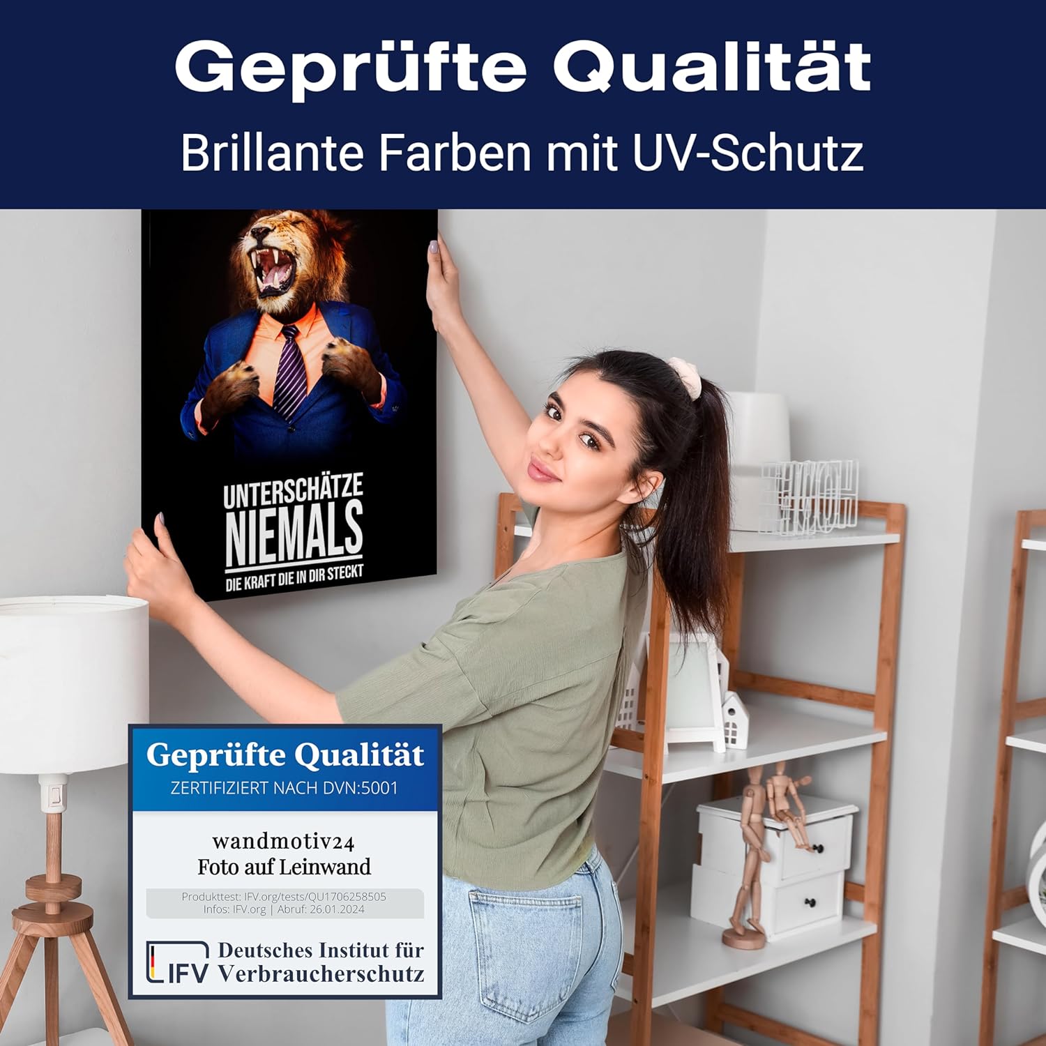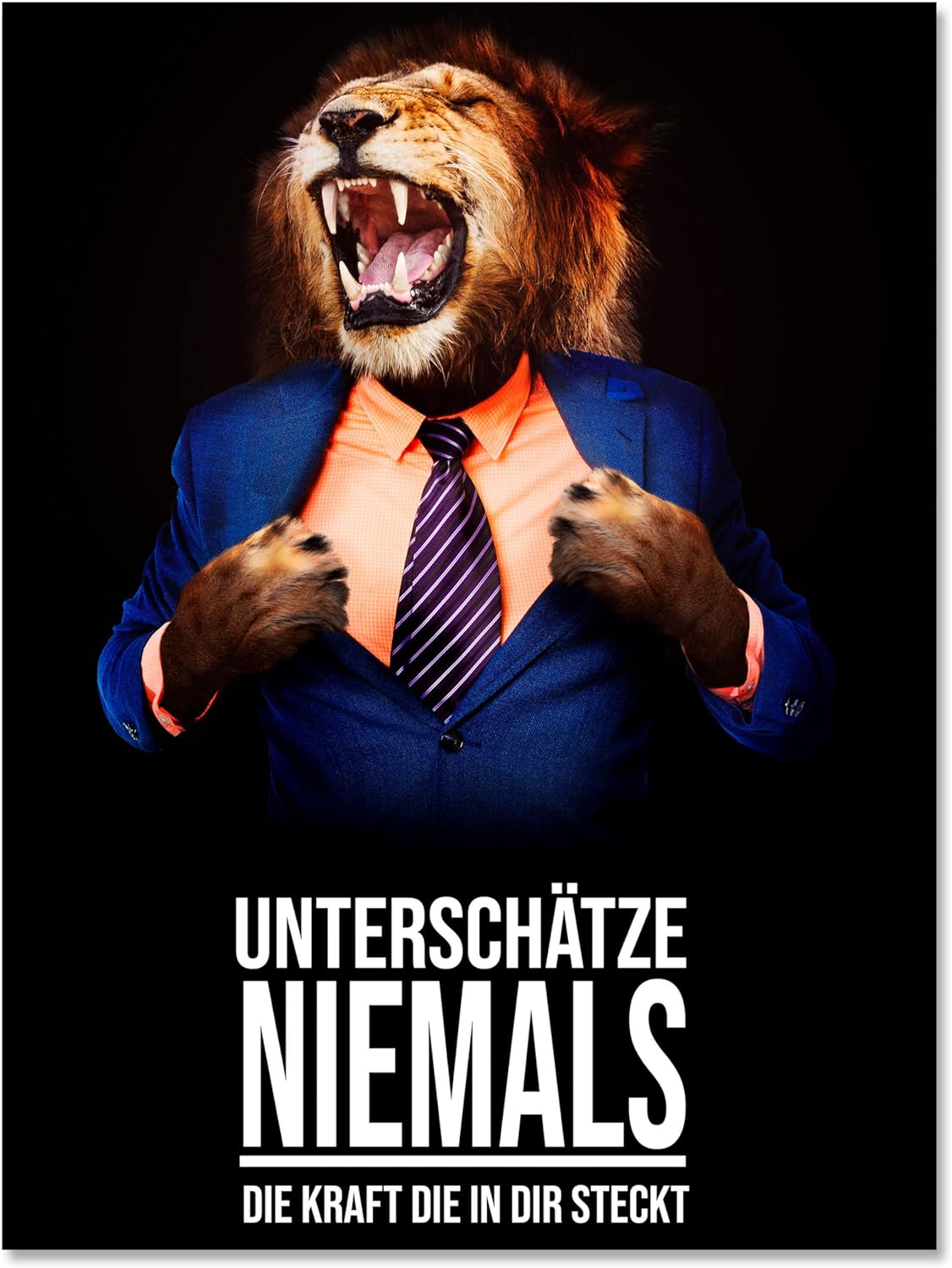 wandmotiv24 Leinwand-Bild Löwe, Grösse 100x75cm, Hochformat, Unterschätze Niemals die Kraft 2, Löwen
