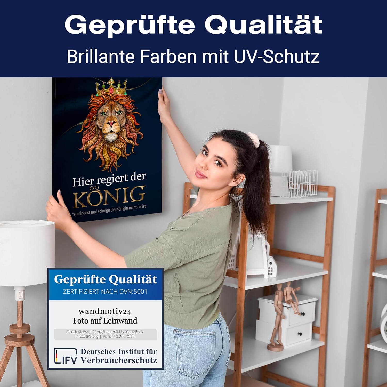 wandmotiv24 Leinwand-Bild Löwe, Grösse 60x45cm, Hochformat, König der Löwen, Gold, Krone, Königin, R