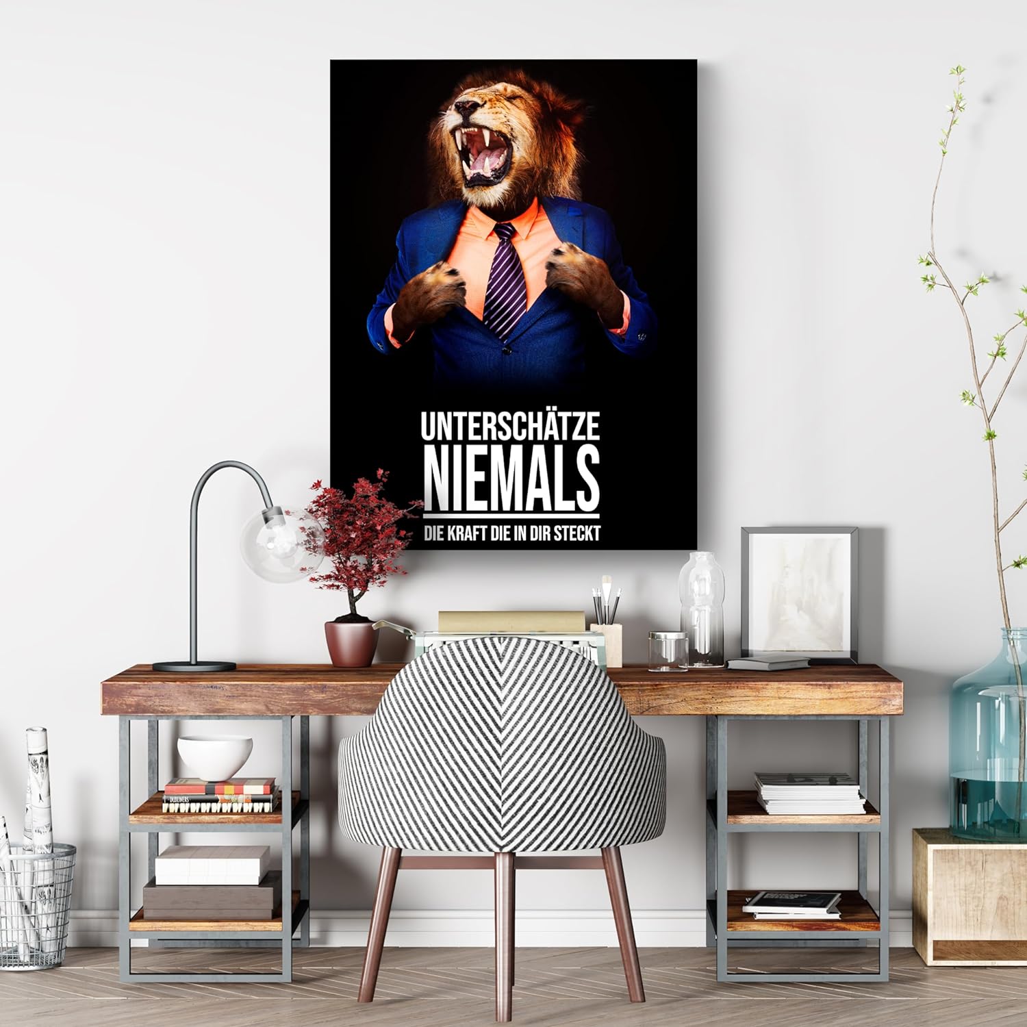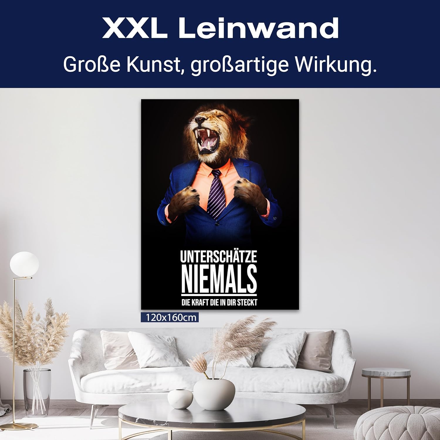wandmotiv24 Leinwand-Bild Löwe, Grösse 60x45cm, Hochformat, Unterschätze Niemals die Kraft 2, Löwen,