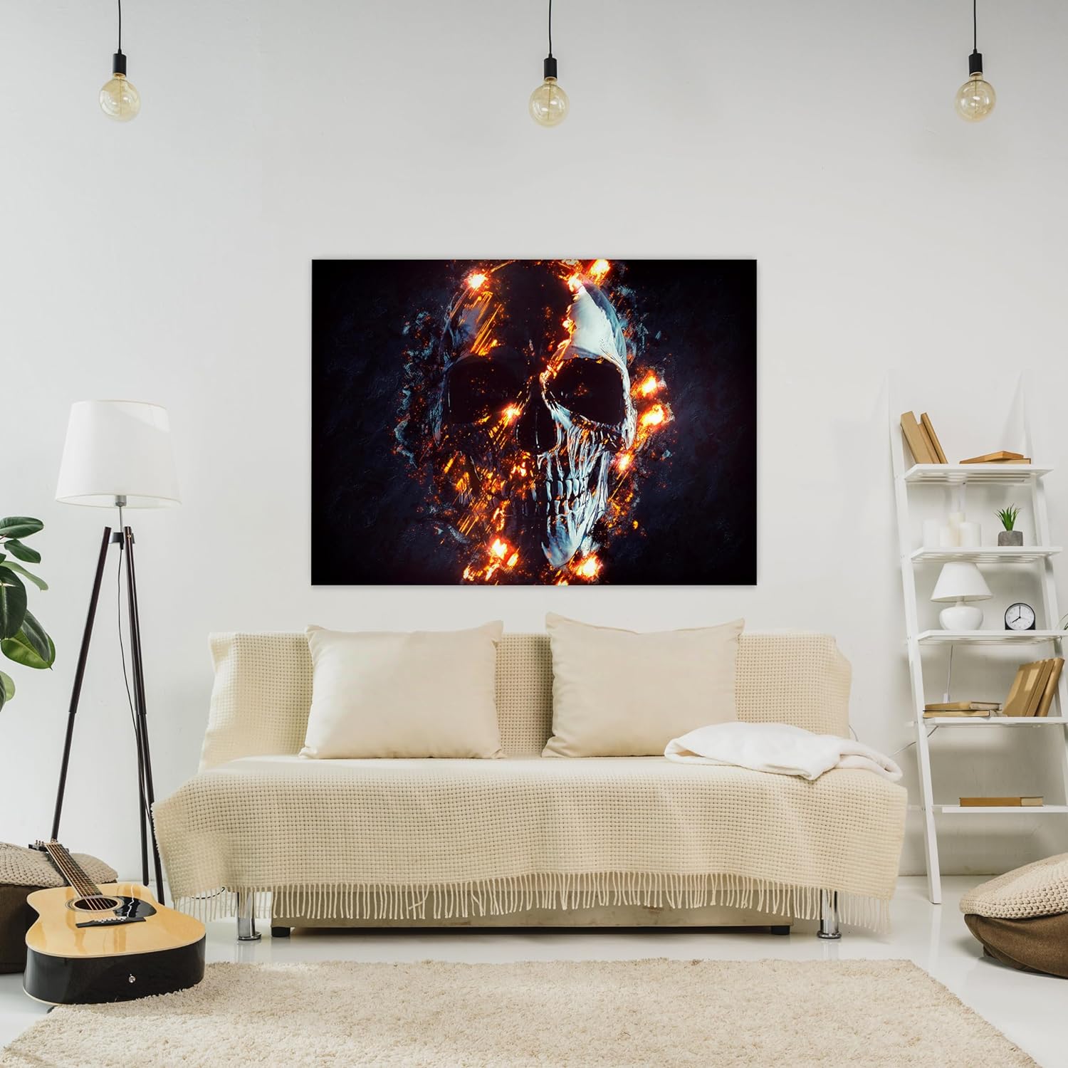 wandmotiv24 Leinwand-Bilder Totenköpfe, Grösse 100x75cm, Querformat, Totenkopf Explosion, Feuer, Boo