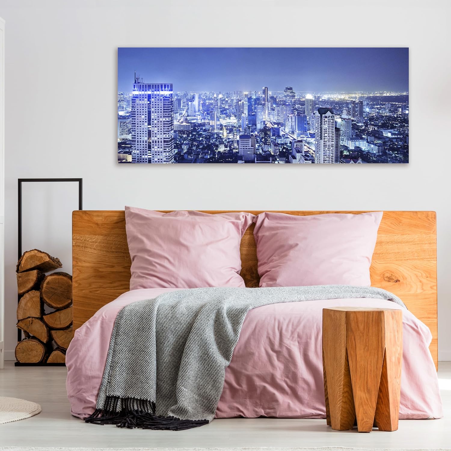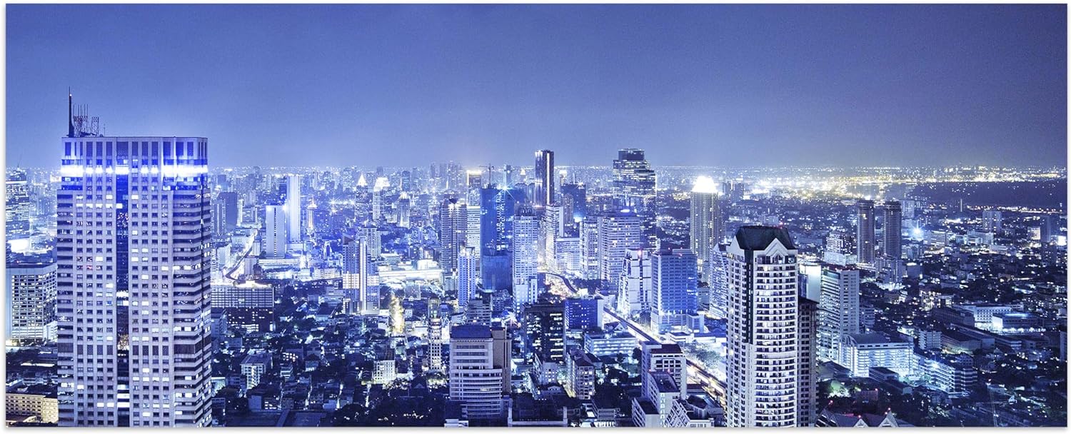 wandmotiv24 Leinwandbild Bangkok bei Nacht 100x40cm (BxH) Bilder auf Leinwand, Dekoration Wohnung mo