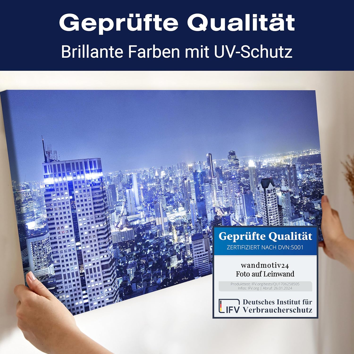 • Hohe Lichtbeständigkeit und lange Haltbarkeit zeichnen unsere Wandbilder aus. 100% Handarbeit aus Deutschland. Unsere Leinwände werden in einer stossfesten Verpackung versendet.