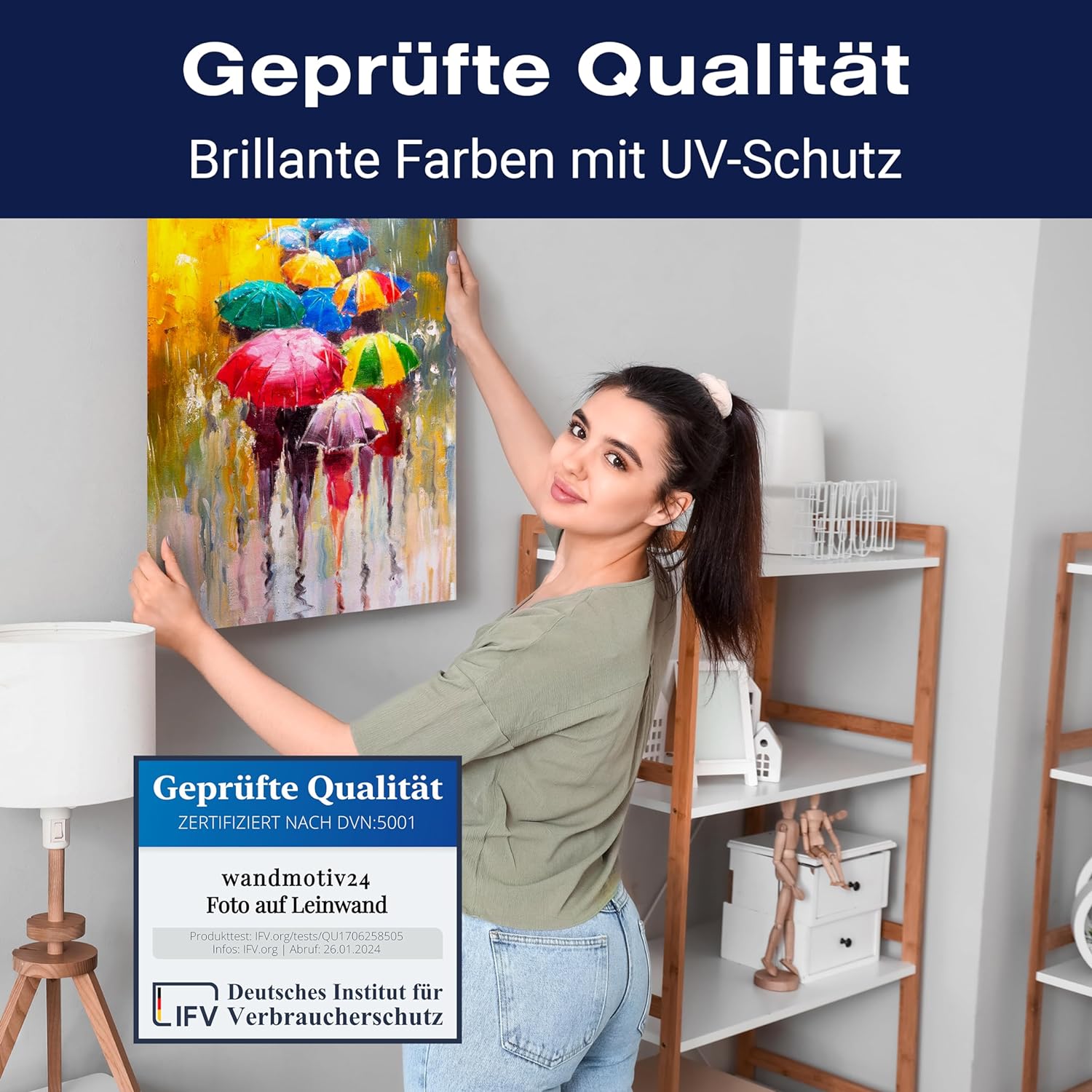 Variante: 80x60cm Leinwandbild Malerei Regenschirme Hochformat M0593