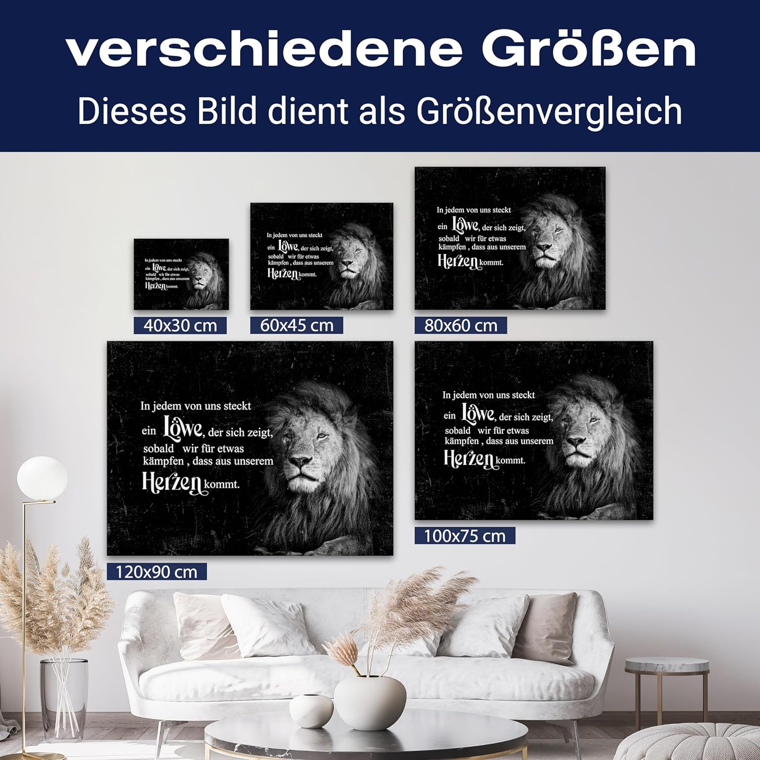 Variante: 80x60cm Leinwandbild in Jedem Steckt ein Löwe Querformat M0492