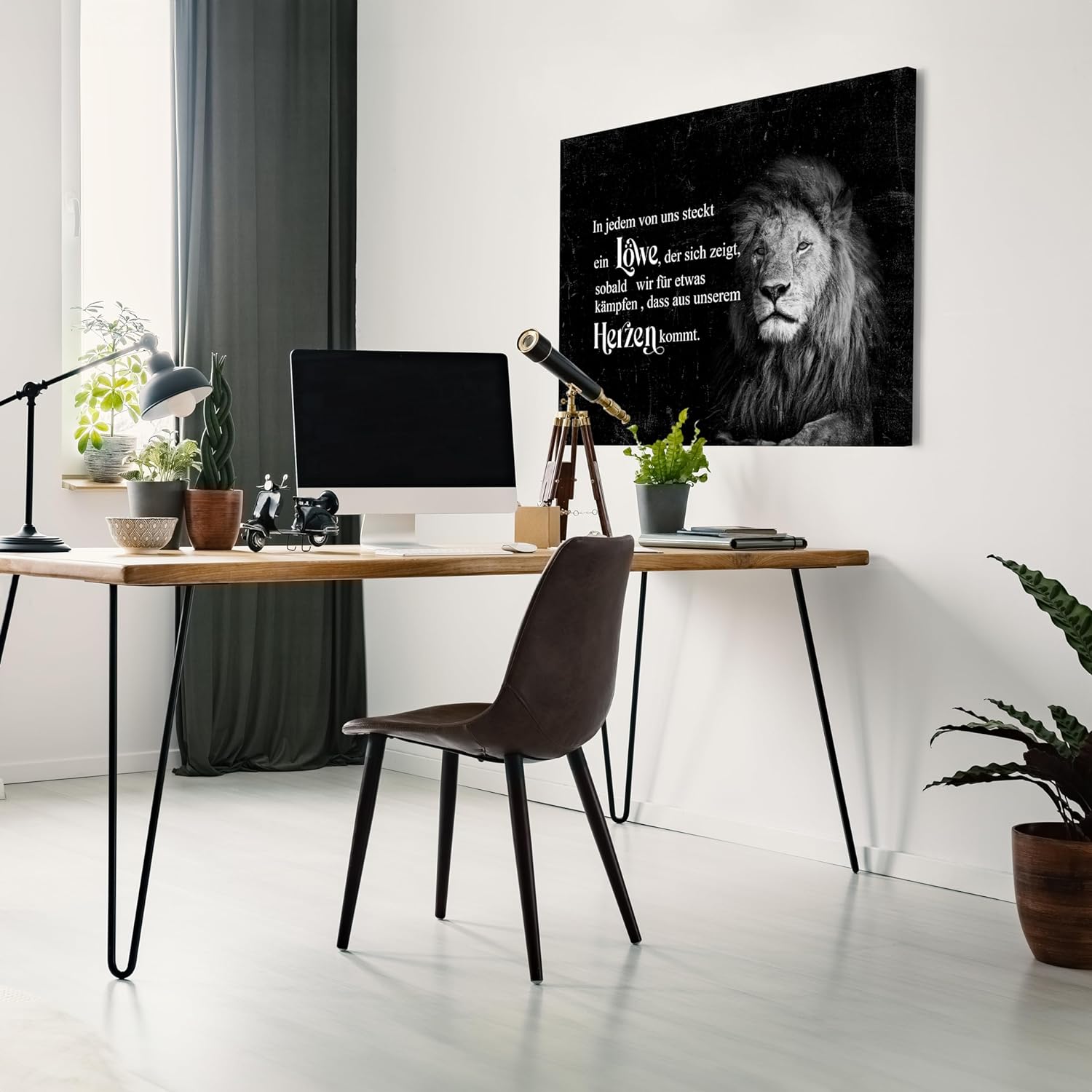 wandmotiv24 Leinwandbild Motivation, 80x60cm, Querformat, In jedem steckt EIN Löwe, Deko, Bilder auf