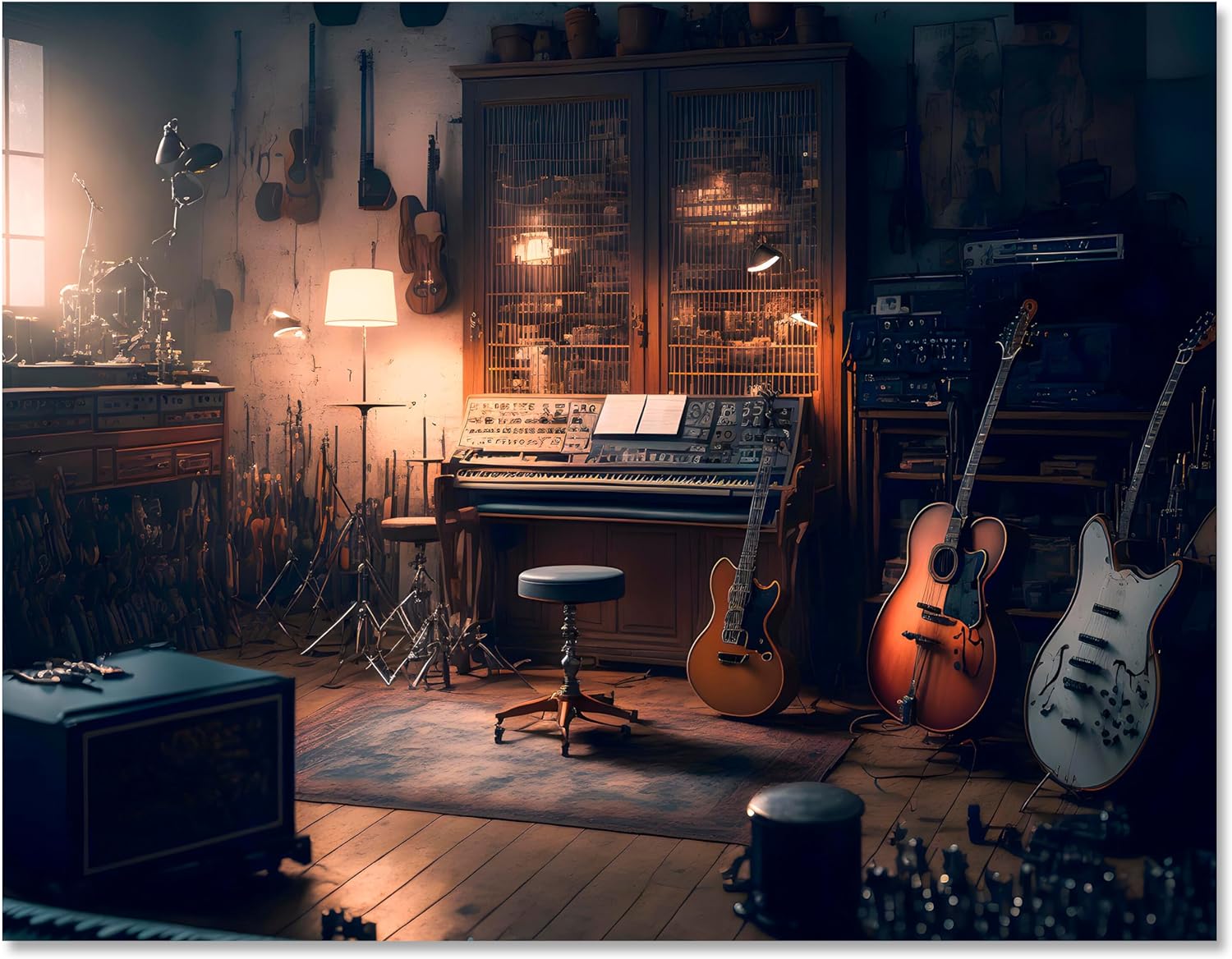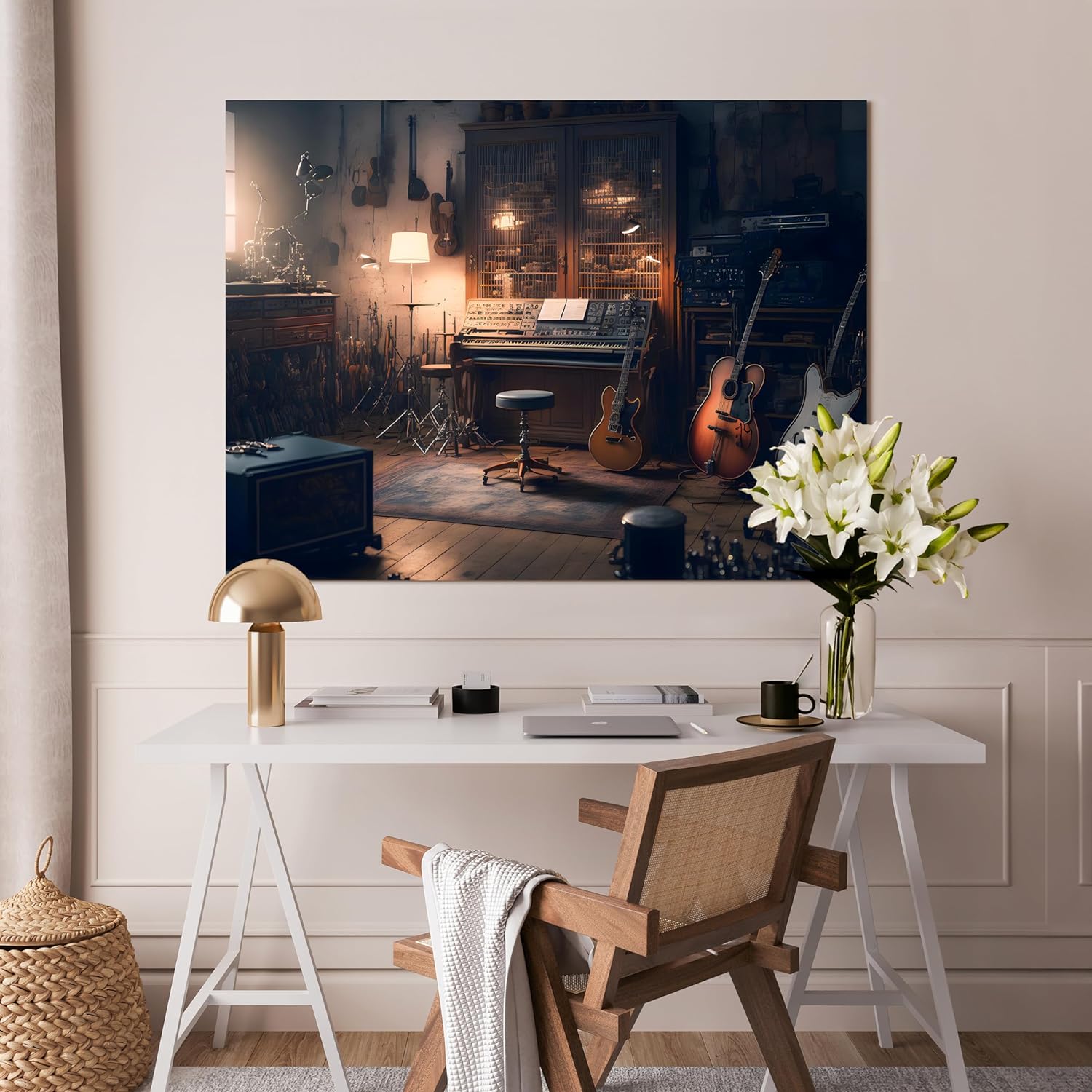 Variante: 60x45cm Leinwandbild Raum Gitarre Querformat M0597