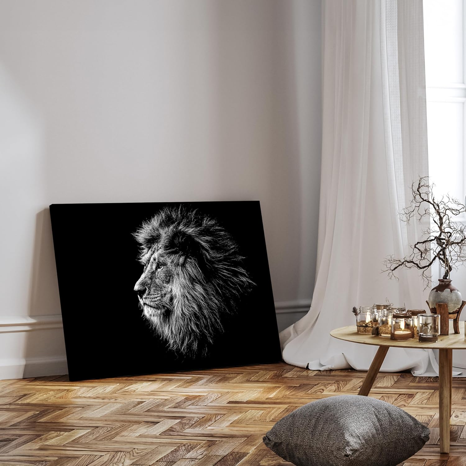 Variante: 80x60cm Leinwandbild Schwarz-weiss Löwe Querformat M0566