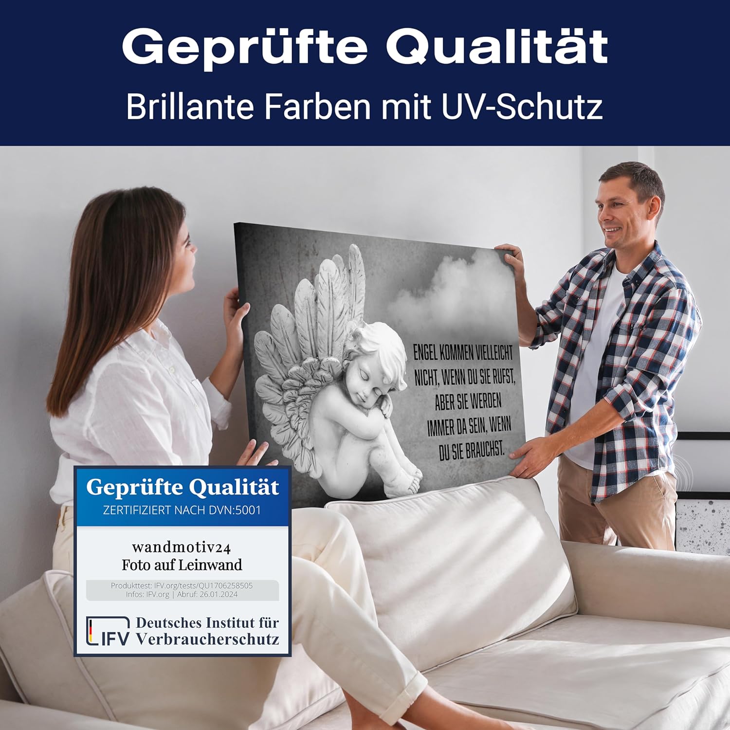 Variante: 80x60cm Leinwandbild Sprüche Engel Querformat M0766