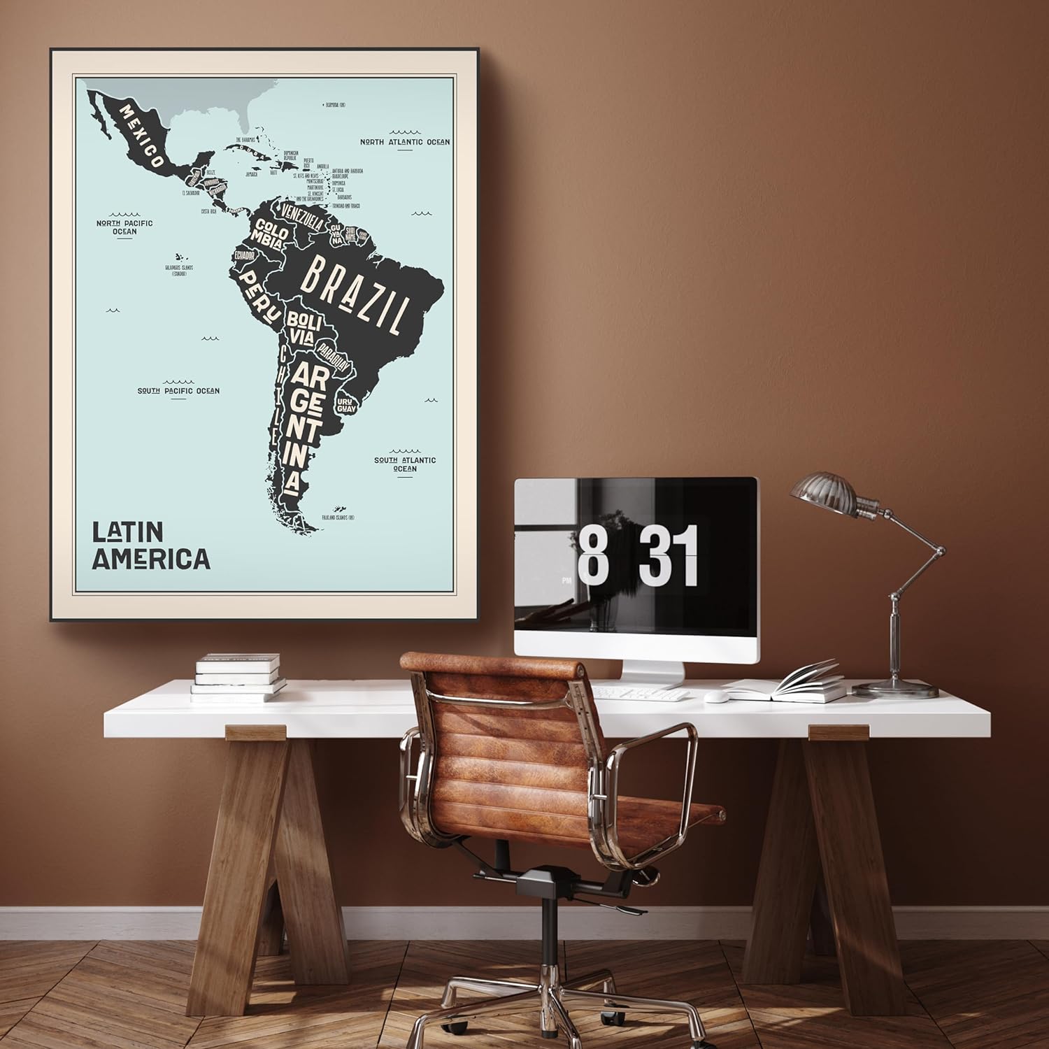Variante: 80x60cm Leinwandbild Weltkarte Südamerika Hochformat M0682