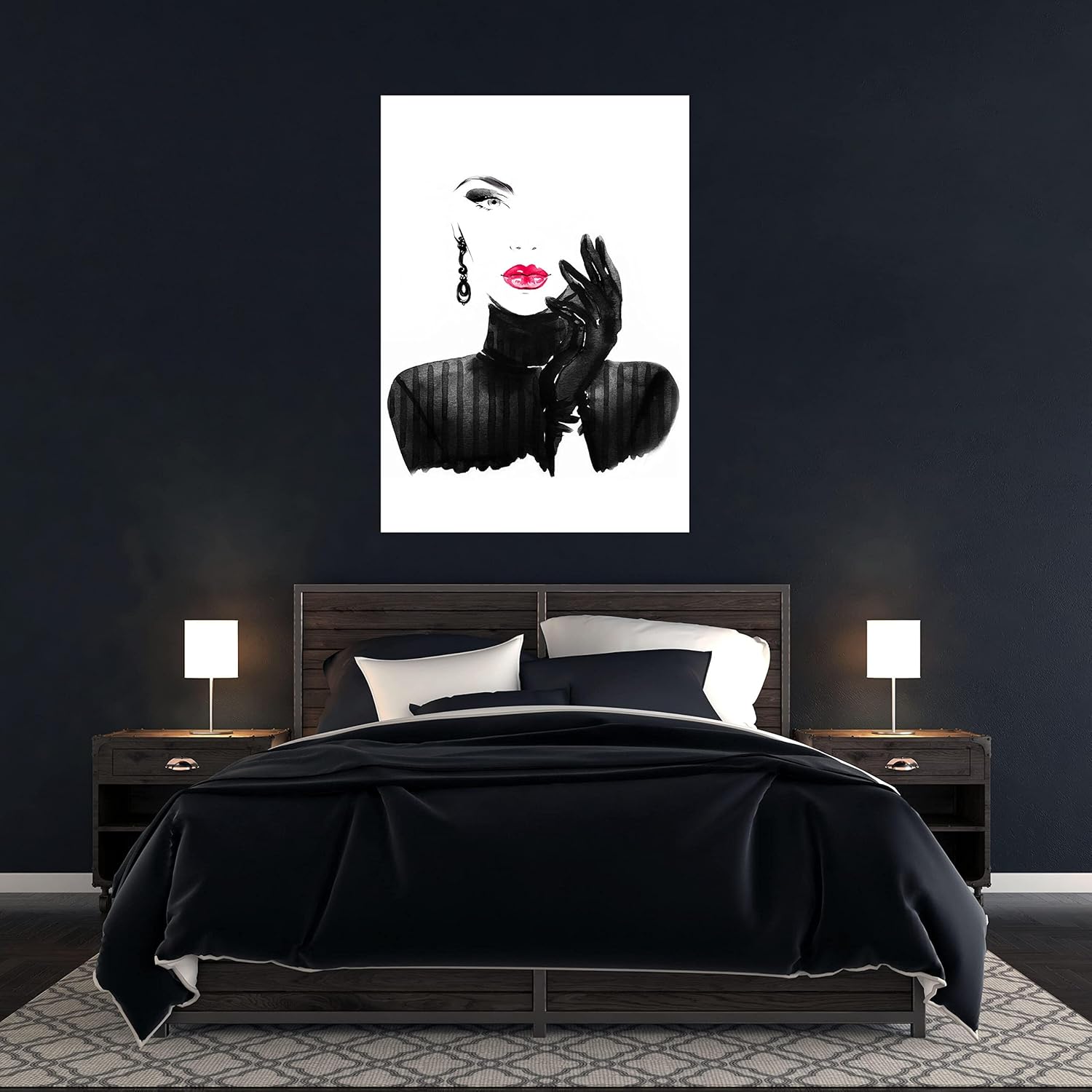 wandmotiv24 Poster als Wanddeko, Grösse Din A0, Model Gemälde, Rot, Fashion, Frau, Frauen Lippen, Ma