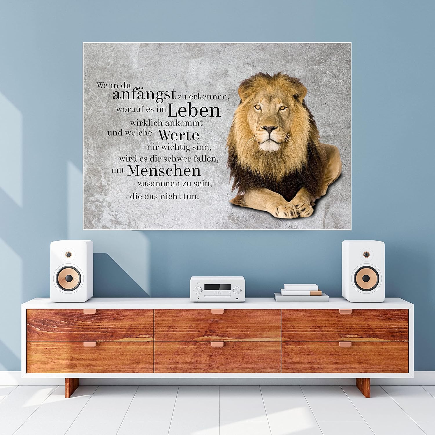 wandmotiv24 Poster als Wanddeko, Grösse 100x70cm, Werte, Löwe, Beton, Grunge, Moderne Wanddeko, Wand