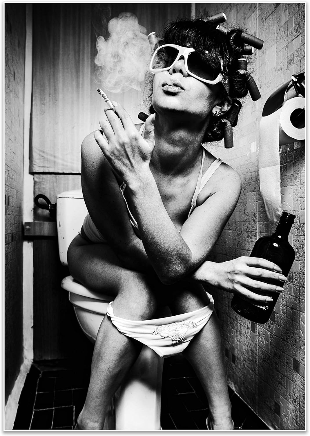 wandmotiv24 Poster als Wanddeko, Grösse Din A0, Frau im Bad, Sonnenbrille, Fotografie, Schwarz Weiss