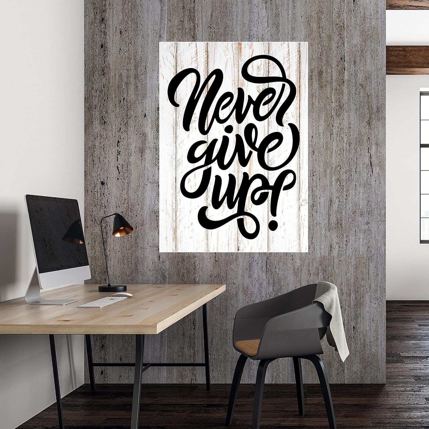 wandmotiv24 Poster als Wanddeko, Grösse Din A0, Never give up, Holz, hell, Moderne Wanddeko, Wandbil