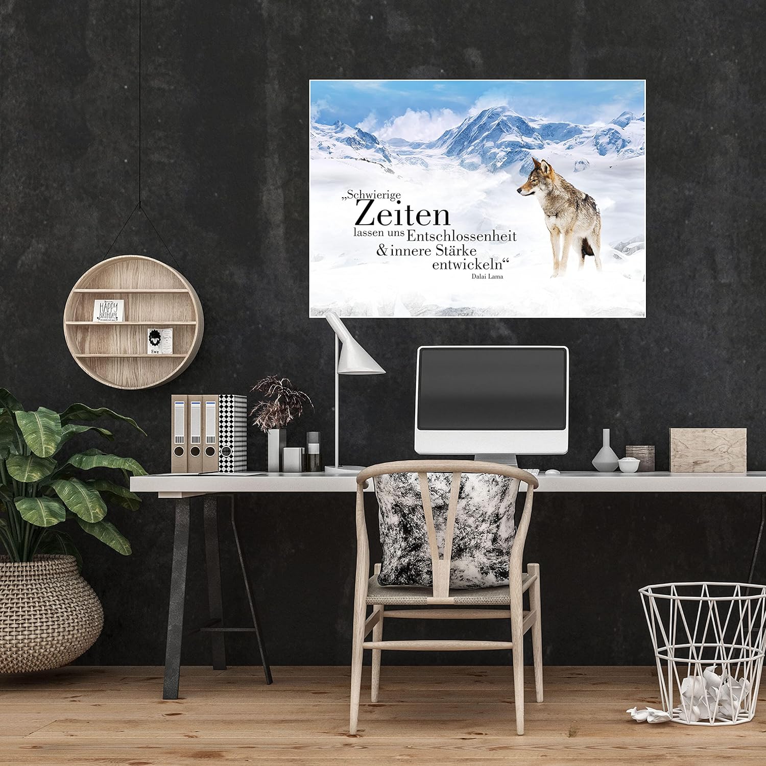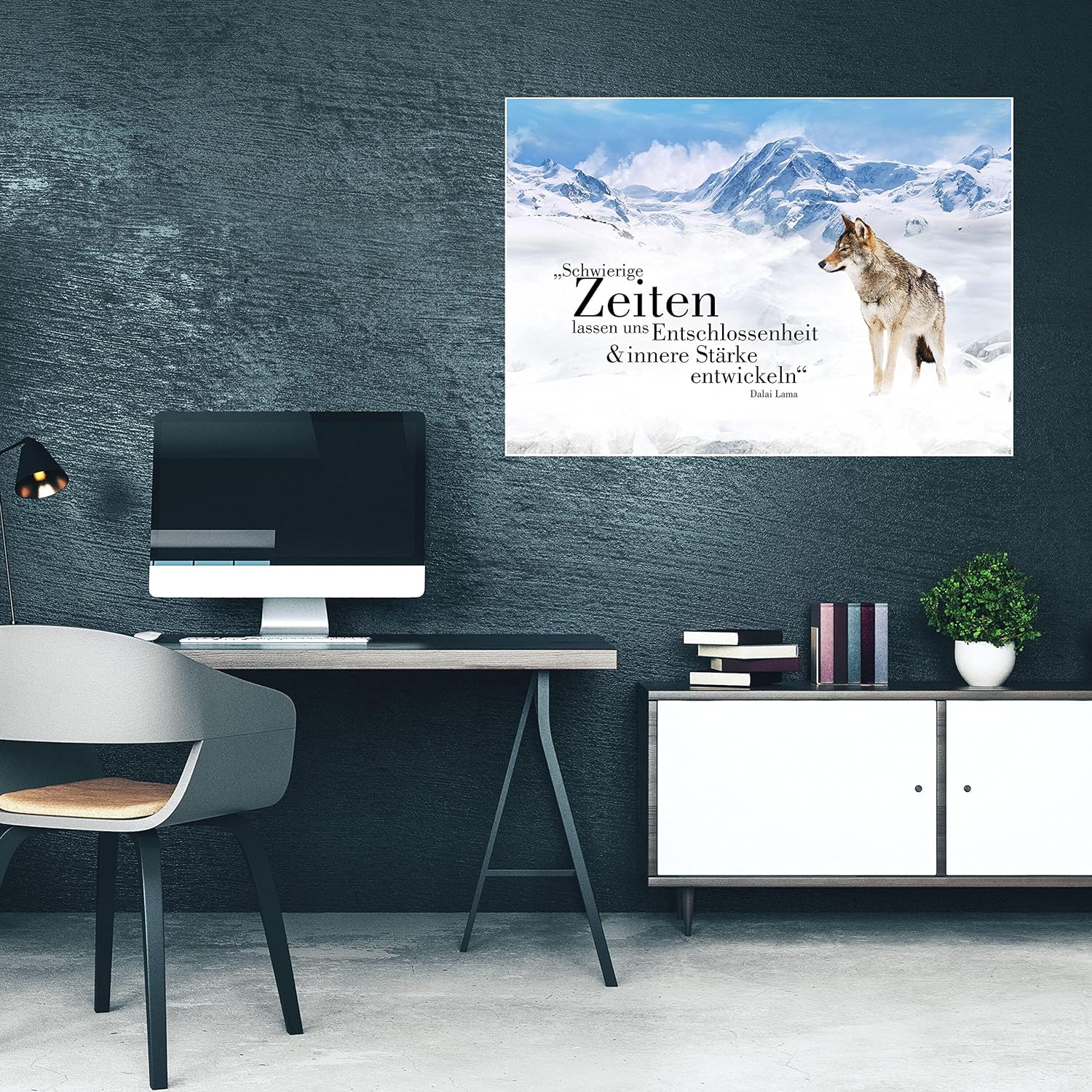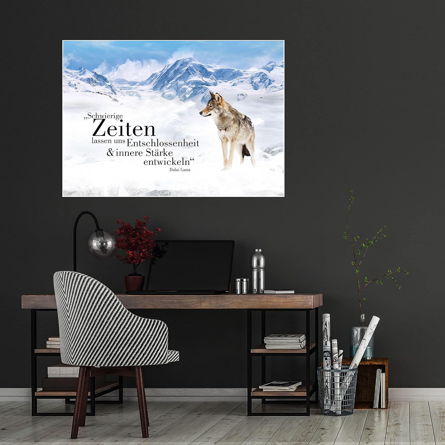 wandmotiv24 Poster als Wanddeko, Grösse Din A1, Wolf in den Bergen, Entschlossenheit, Wölfe, Tiere,