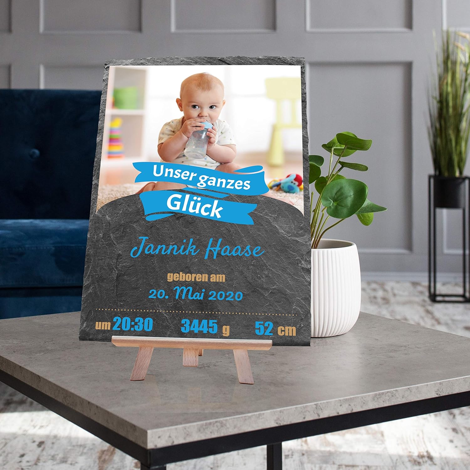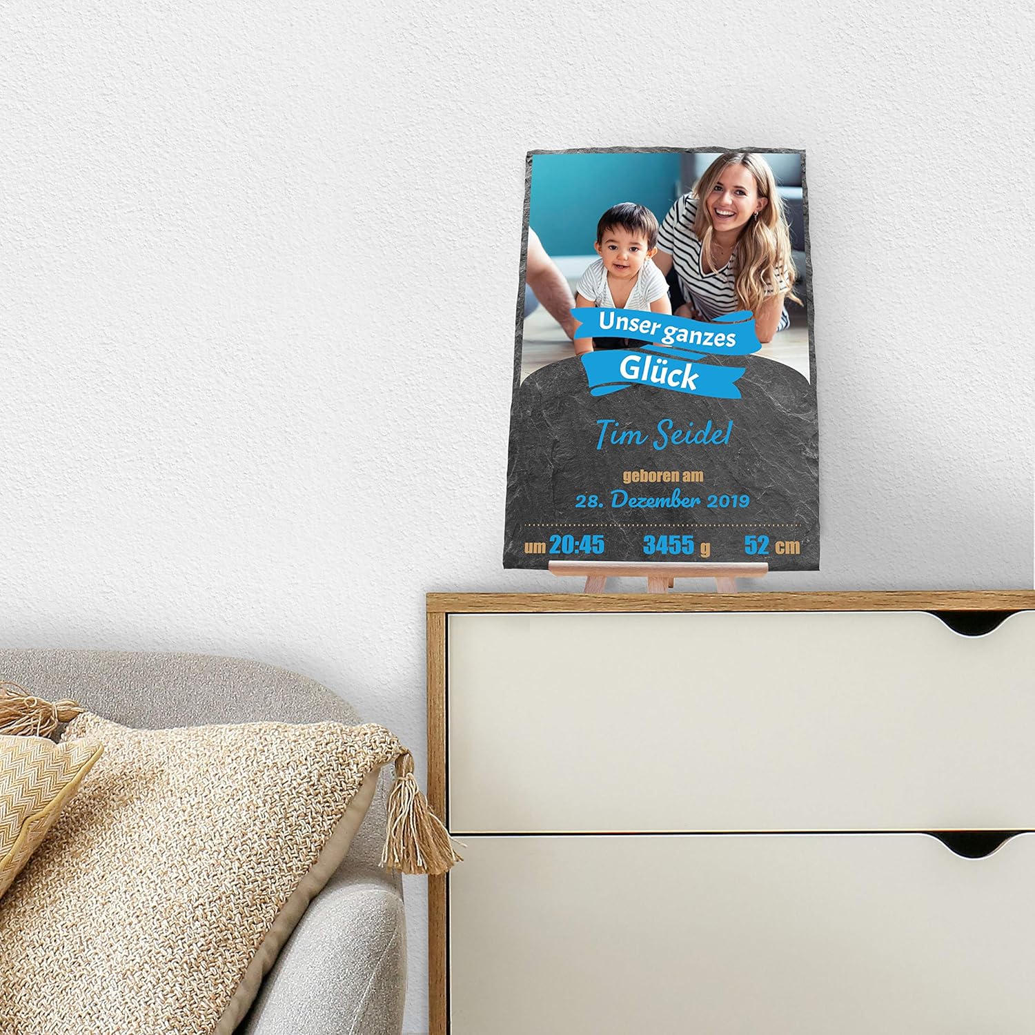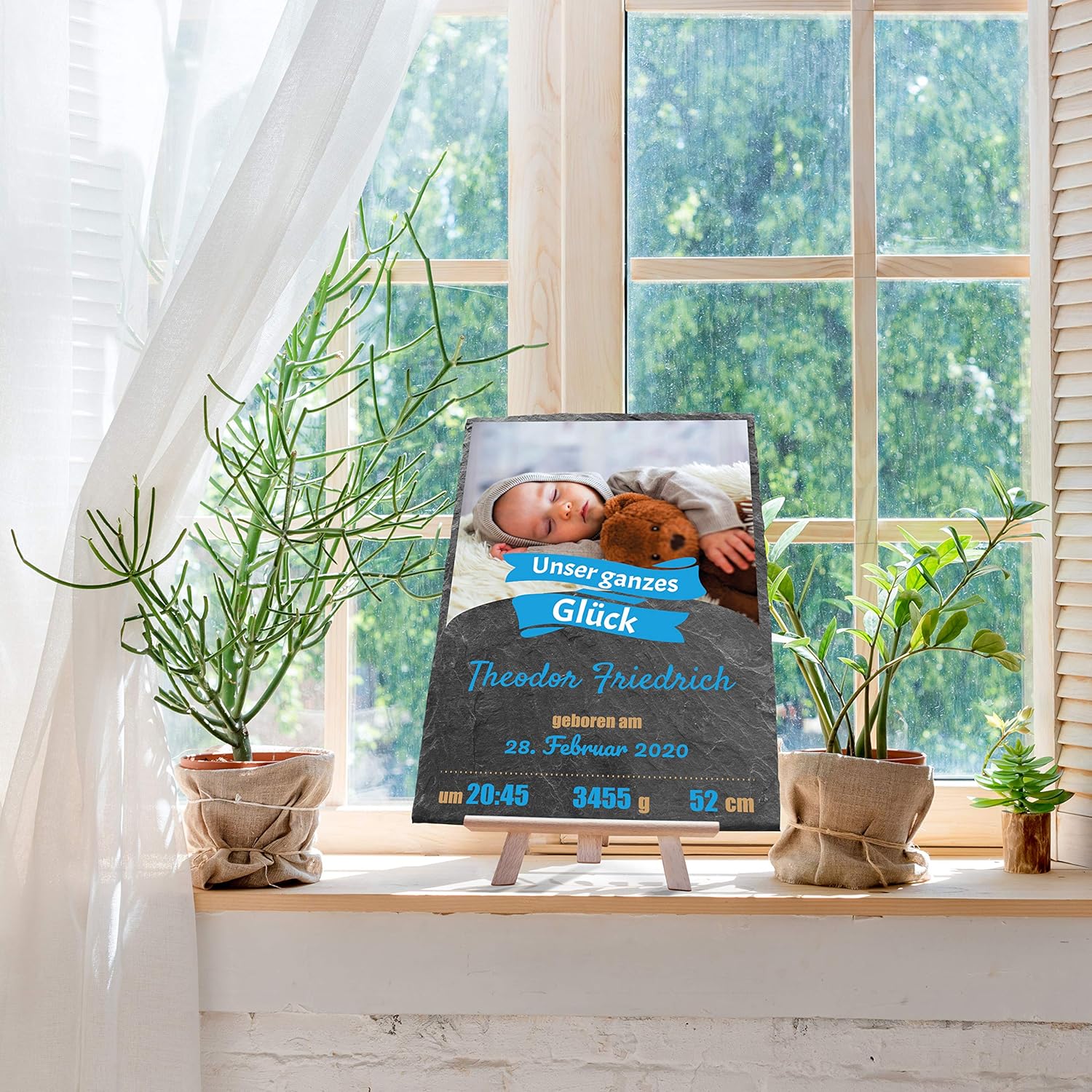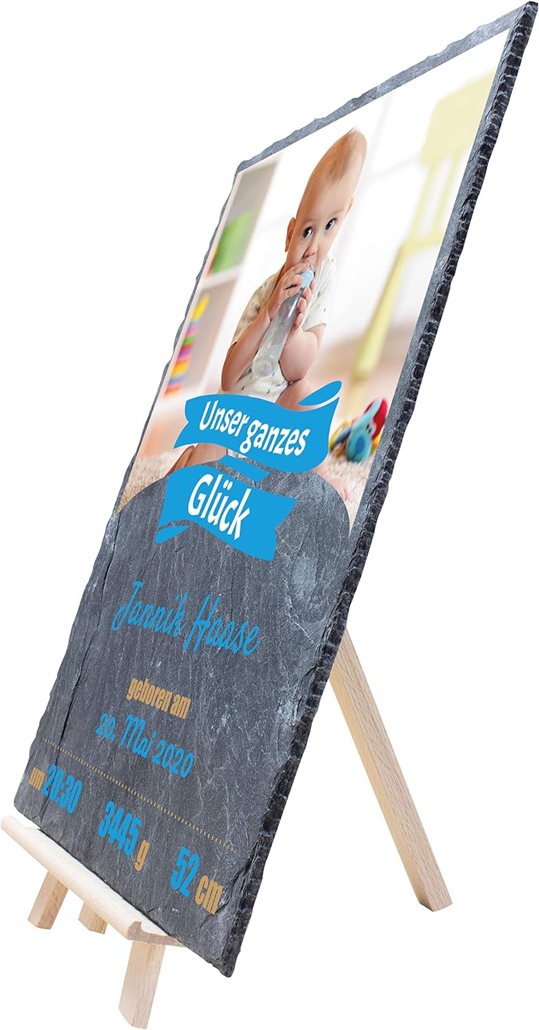 wandmotiv24 Schieferplatte mit eigenem Foto zur Geburt, 20 x 30 cm, inklusive Staffelei, Unser ganze