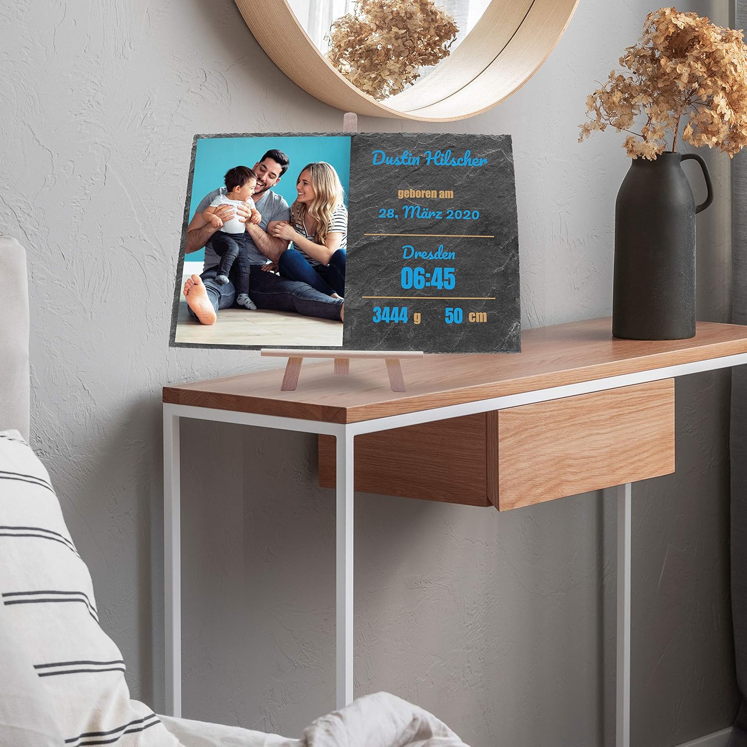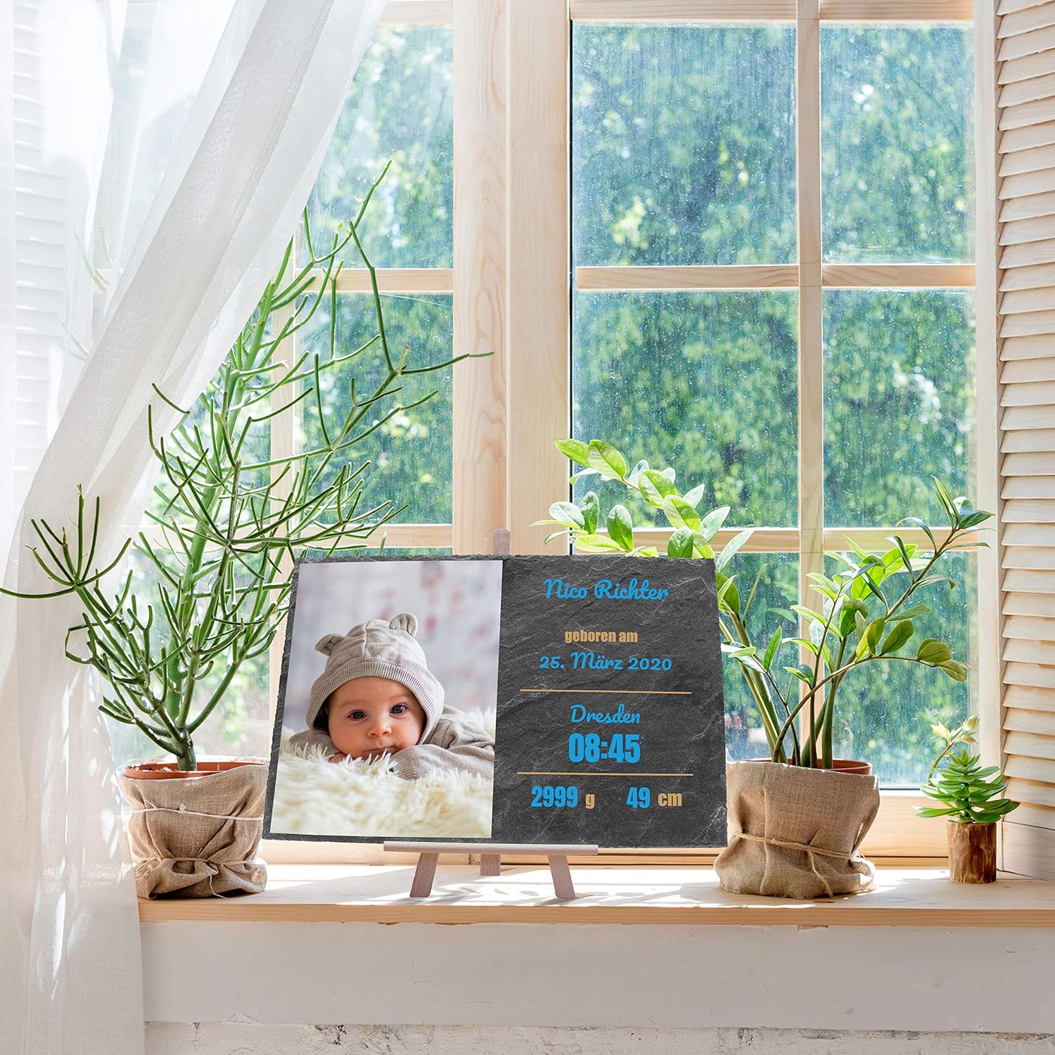 wandmotiv24 Schieferplatte mit eigenem Foto zur Geburt, 30 x 20 cm, inklusive Staffelei, Babyfoto, G