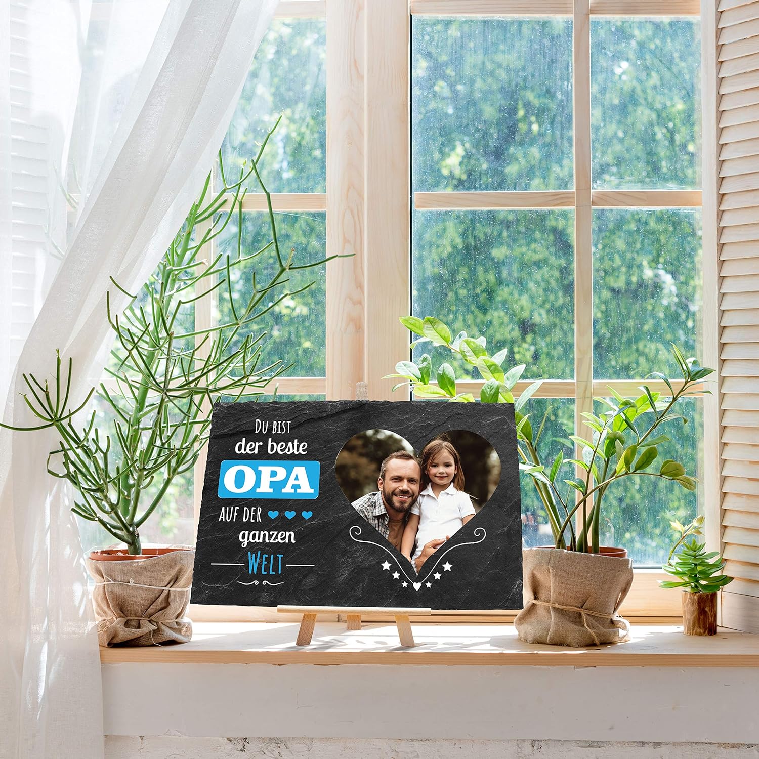 - PERSONALISIERBARES FOTOGESCHENK: Schieferplatte mit individuellem Bildmotiv und Spruch für den besten Opa. Bildanpassung direkt im Bestellvorgang. Ein persönliches Fotogeschenk für Grossväter.