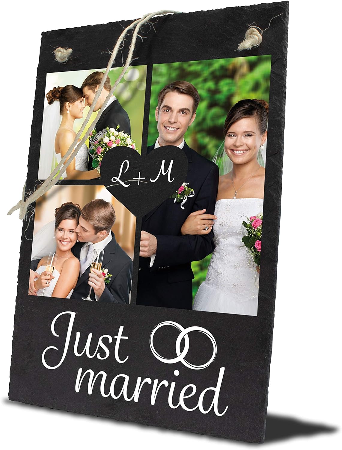 wandmotiv24 Schiefertafel Hochzeit Just Married, Aufhängeschild mit Strick, Personalisierbar Digital