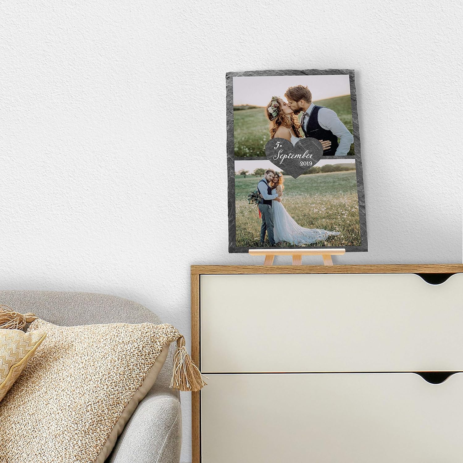 • NAMEN, FOTO UND/ODER DATUM PERSONALISIERBAR: Die Schieferplatte wird hochwertig im Digitaldruck bedruckt, den Namen,das Bild und/oder Datum passen Sie selbst individuell an für Ihre Schieferplatte.