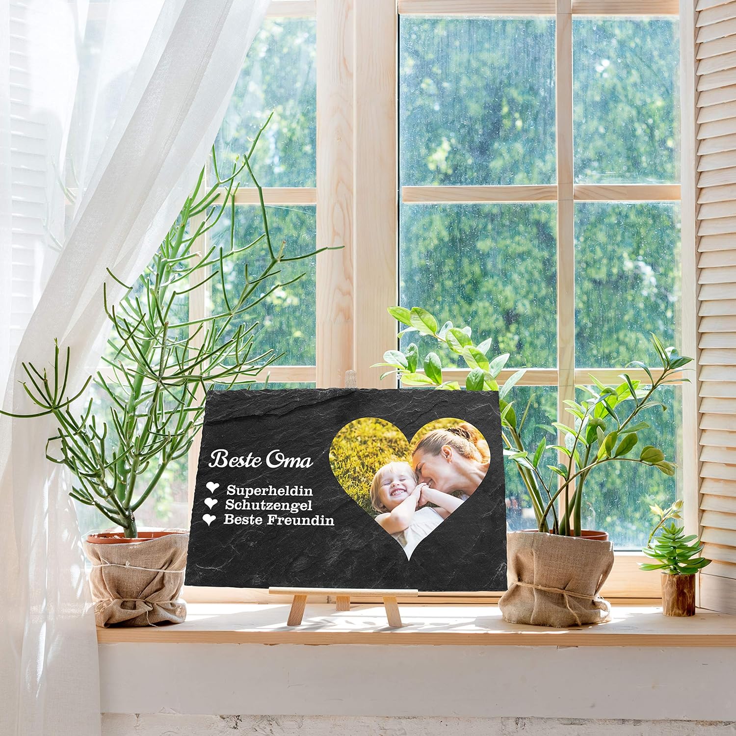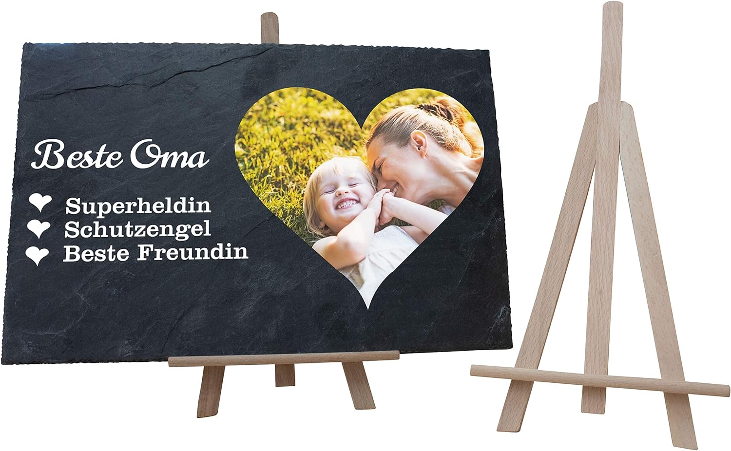 - SCHIEFERTAFEL AUF STAFFELEI: Bedruckte Schieferplatte Querformat auf Mini-Staffelei aus Holz, bedruckt im hochwertigen Digitaldruck. Sofortige Online-Anpassung zur Personalisierung.