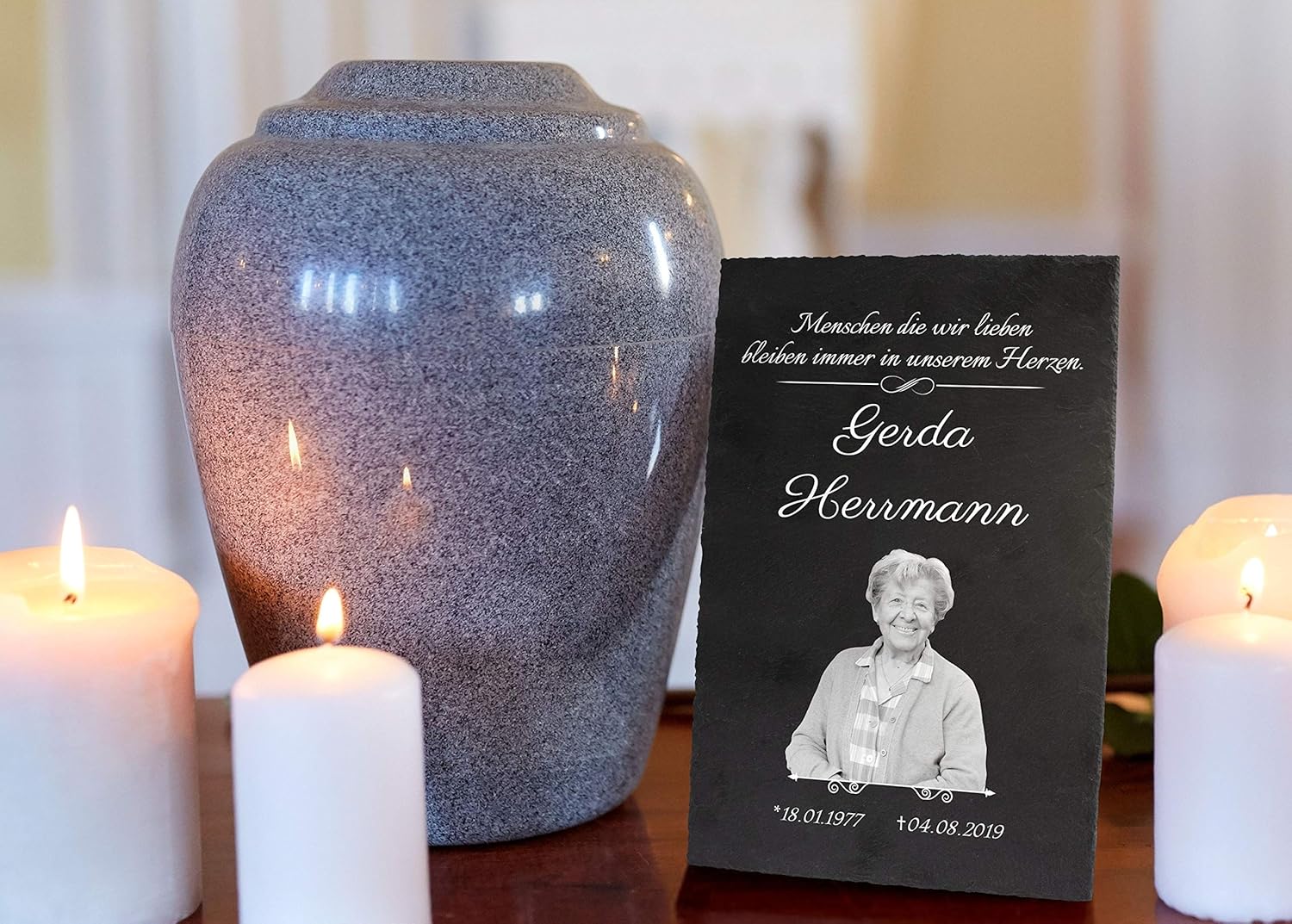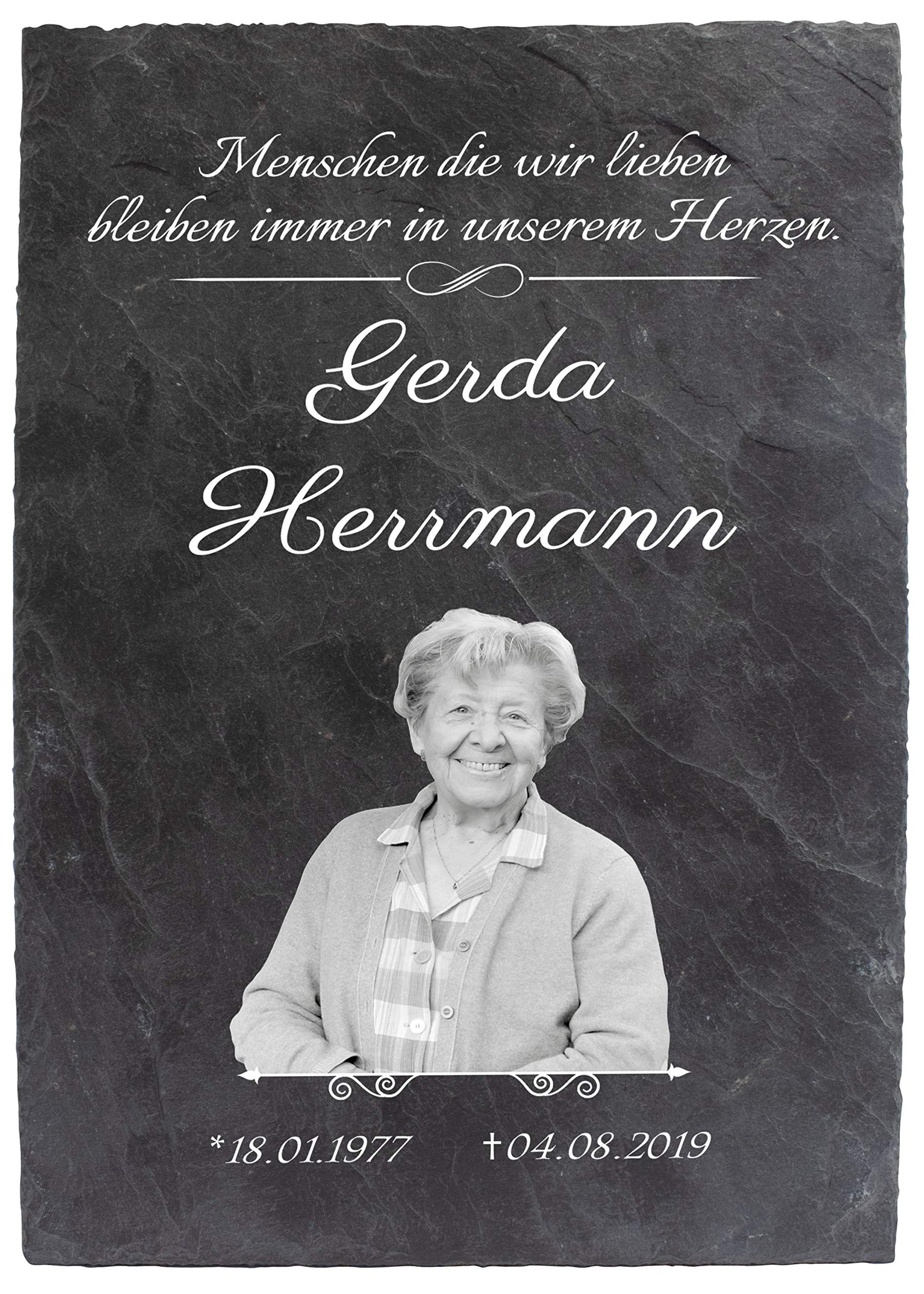- VERWENDUNG: Bedruckte Schieferplatte zum Anbringen auf dem Grabstein, als Grabplatte, Gedenktafel oder zum Aufstellen während der Trauerfeier. Ein würdiges Andenken an den oder die verstorbene.