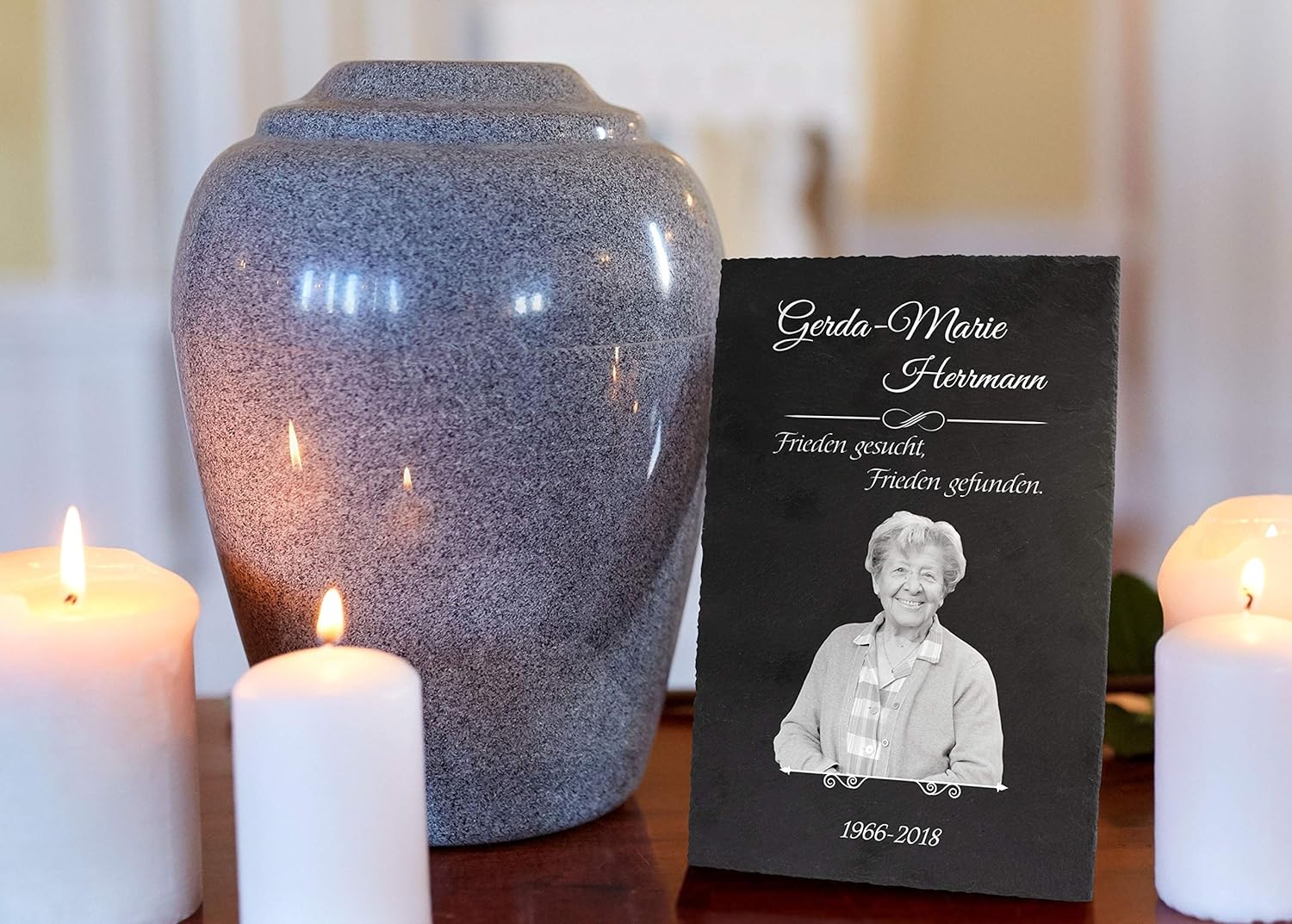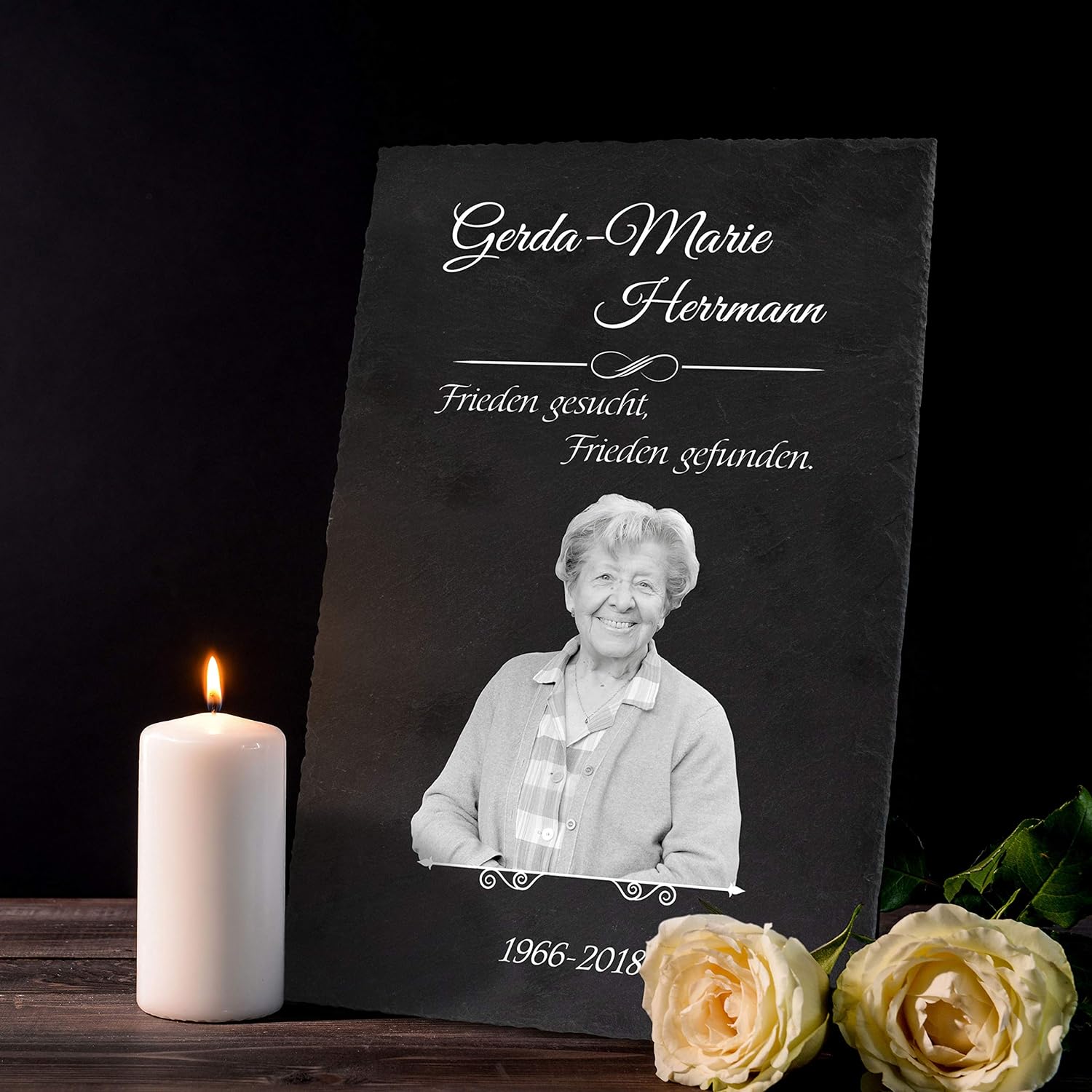 - VERWENDUNG: Bedruckte Schieferplatte zum Anbringen auf dem Grabstein, als Grabplatte, Gedenktafel oder zum Aufstellen während der Trauerfeier. Ein würdiges Andenken an den oder die verstorbene.