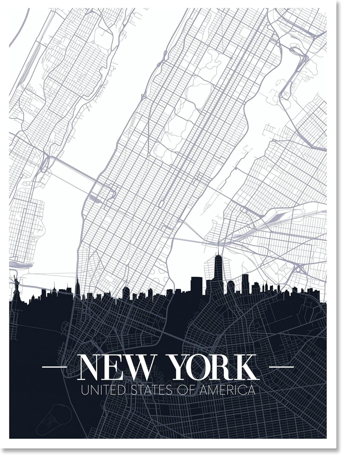 wandmotiv24 Stadt Karte als Leinwandbild, 100x75cm, Hochformat, New York City, USA, NYC, Amerika, St