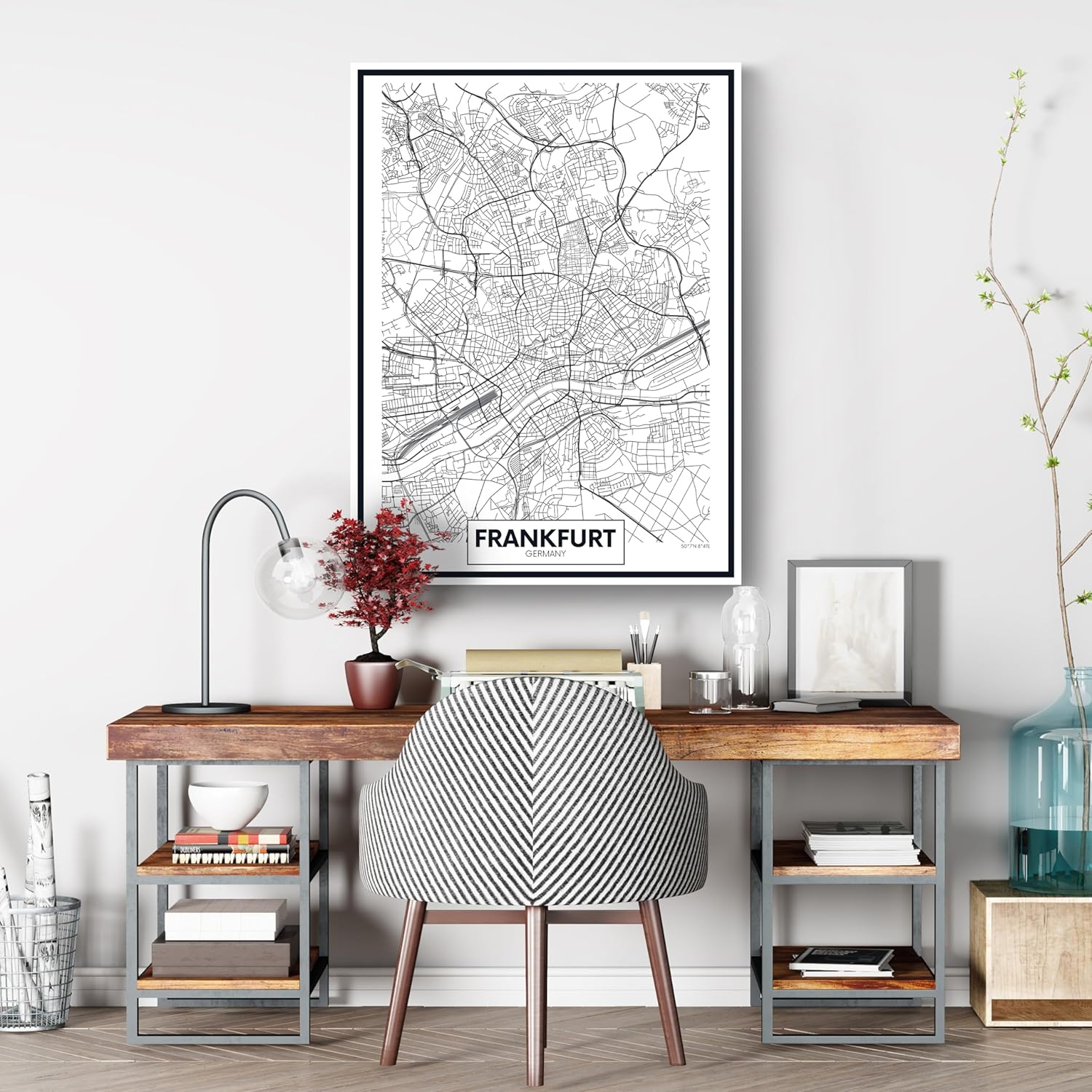Variante: 60x45cm Leinwandbild Stadt Karte, Hochformat M0458