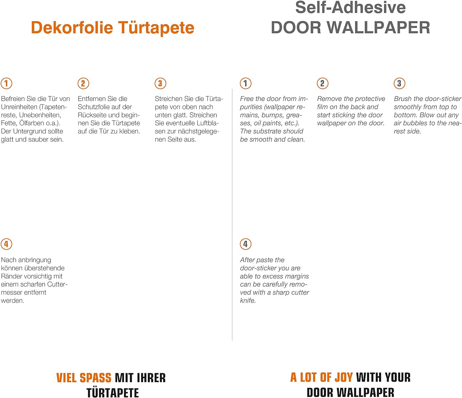 - UNKOMPLIZIERT: Ihr Türposter wird nicht in Bahnen geliefert. Ihr Poster kommt Montage-fertig in einem Stück so das Sie nicht auf Stösse oder ähnliches achten müssen. AUSRICHTEN - KLEBEN - GENIESSEN!