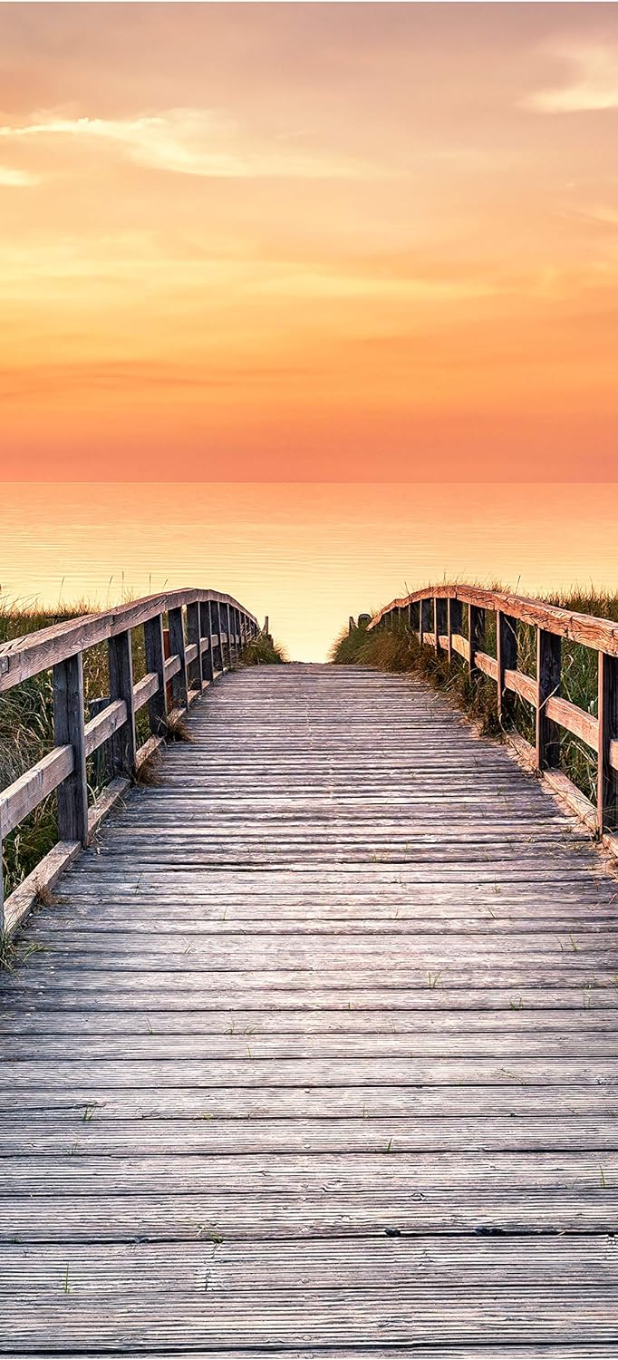 wandmotiv24 Türtapete Holz-steg zum Meer, Abend-rot, Sonne 70 x 200cm (B x H) - Dekorfolie selbstkle