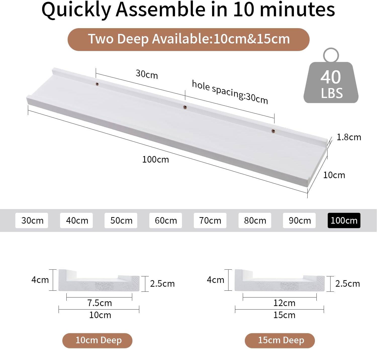 Variante: 100cmx10cm Weiß,eiche