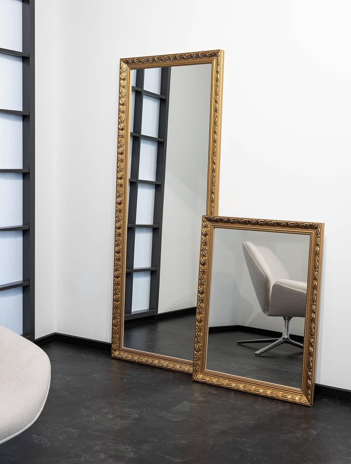 - Dekorativer Wandspiegel im Vintage-Stil – Der breite MDF-Rahmen mit feinen Ornamenten verleiht dem Spiegel eine elegante, nostalgische Optik – perfekt für romantische Wohnkonzepte oder als stilvoller Akzent in modernen Räumen.