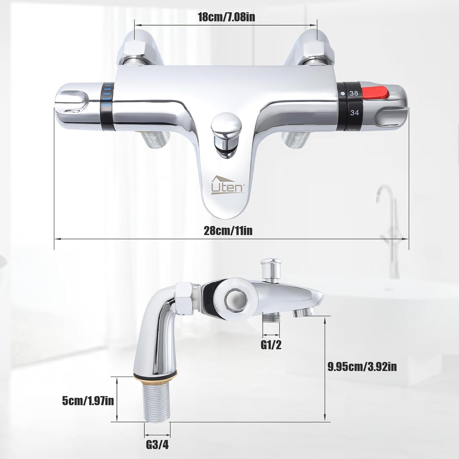 - 【Hochwertige Intelligente Wannenthermostat】 Wannenarmatur mit Thermostat von Uten ist aus hochpräzisem Messing gefertigt, sodass Sie sich keine Sorgen um Rost machen müssen. Gleichzeitig ist es dank der PVD-beschichteter Oberfläche sehr glatt,