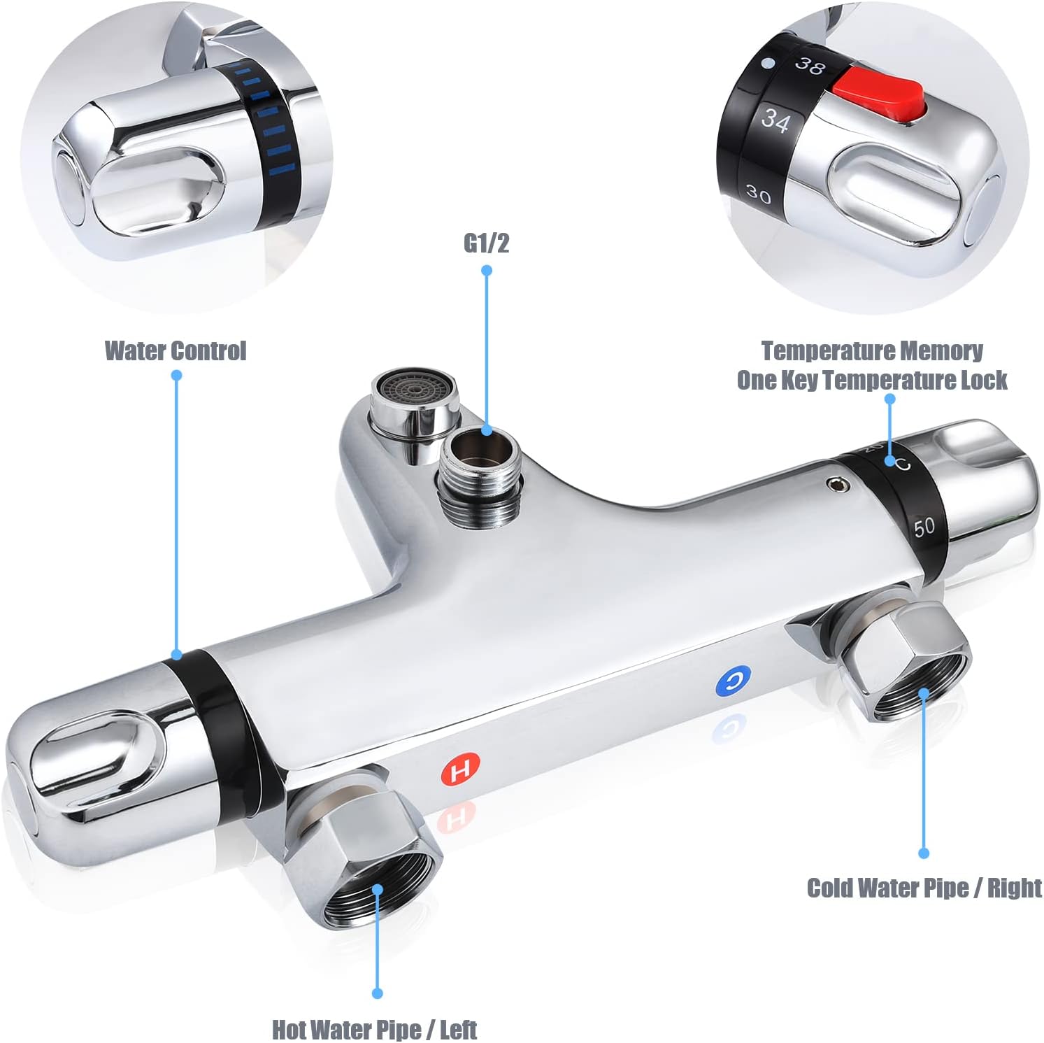 - 【Konstante Wassertemperatur】Duscharmatur mit Thermostat verfügt über einen Temperatureinstellbereich von 0-50°C, eine voreingestellte Temperatur von 38°C und eine Sicherheitssperre, um Unfälle zu vermeiden, so dass er für den Gebrauch in der