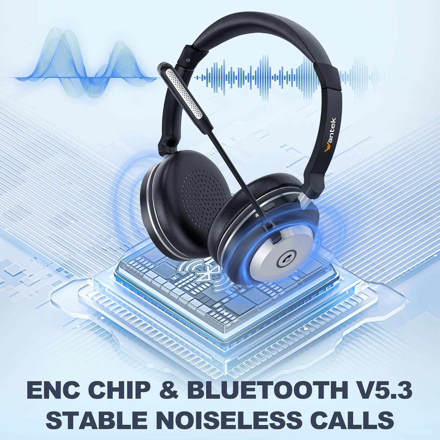 - [Borad Kompatibilität] Wantek 882BT Headset mit Noise Cancelling Mikrofon funktioniert mit allen Bluetooth- oder USB-Geräten wie Computern, Laptops, Tablets oder Smartphones. Einige Geräte ohne Bluetooth-Funktion könnten eine Drahtverbindung über