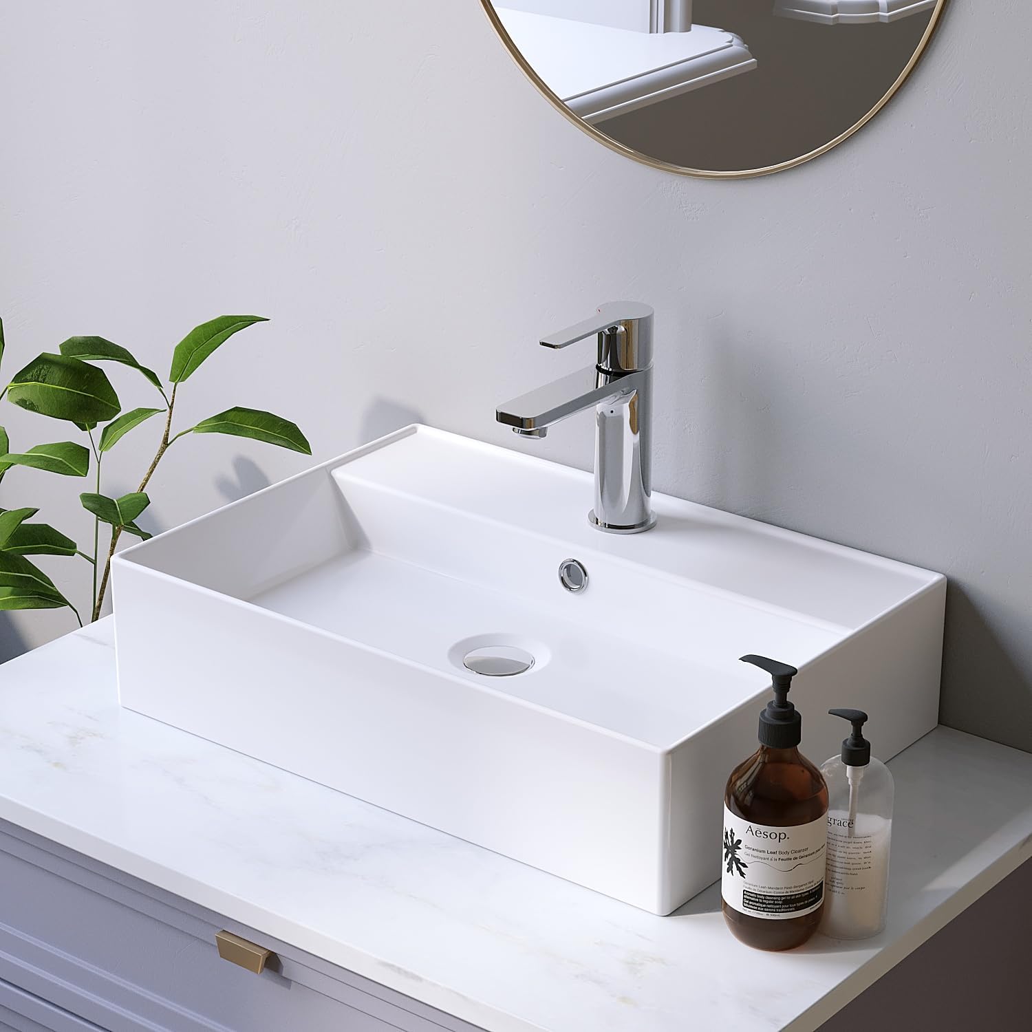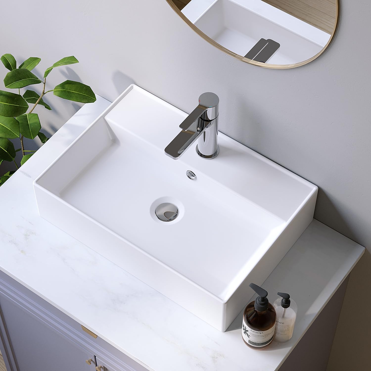 - 【Stark und Haltbar】Das Waschbecken ist aus hochwertiger Keramik gefertigt, die bei hohen Temperaturen gebrannt wurde. Dieses Material ist robust, kratzfest sowie hitzebeständig und hat sich seit Jahren in Badezimmern bewährt. Wir bemühen uns,