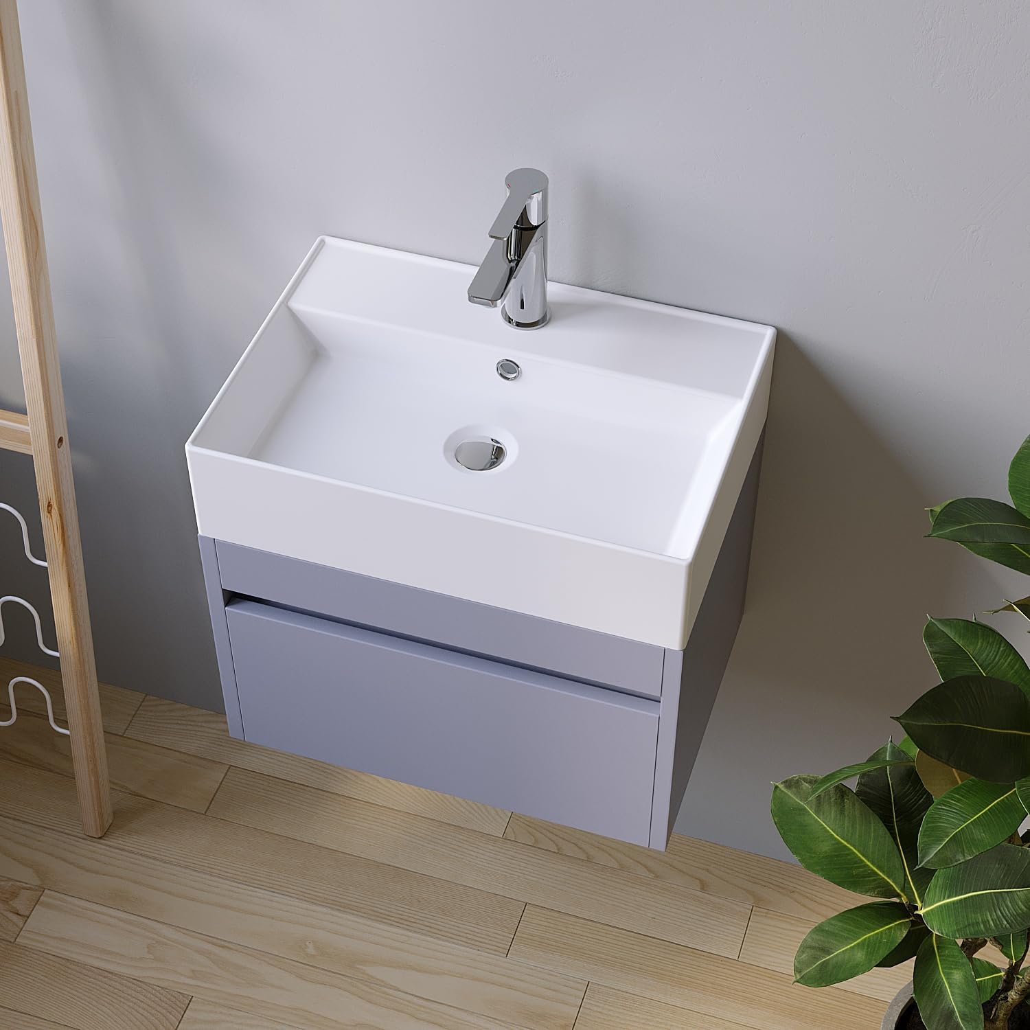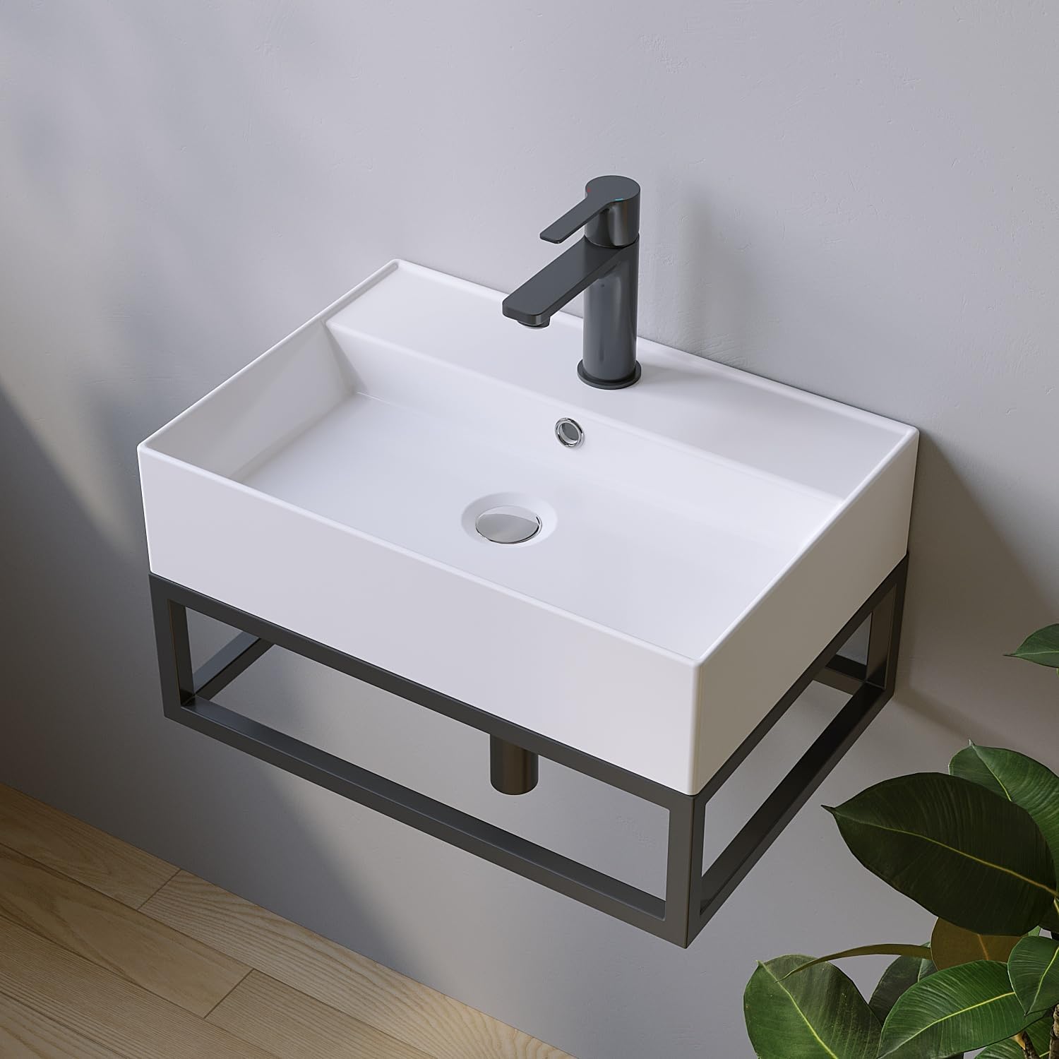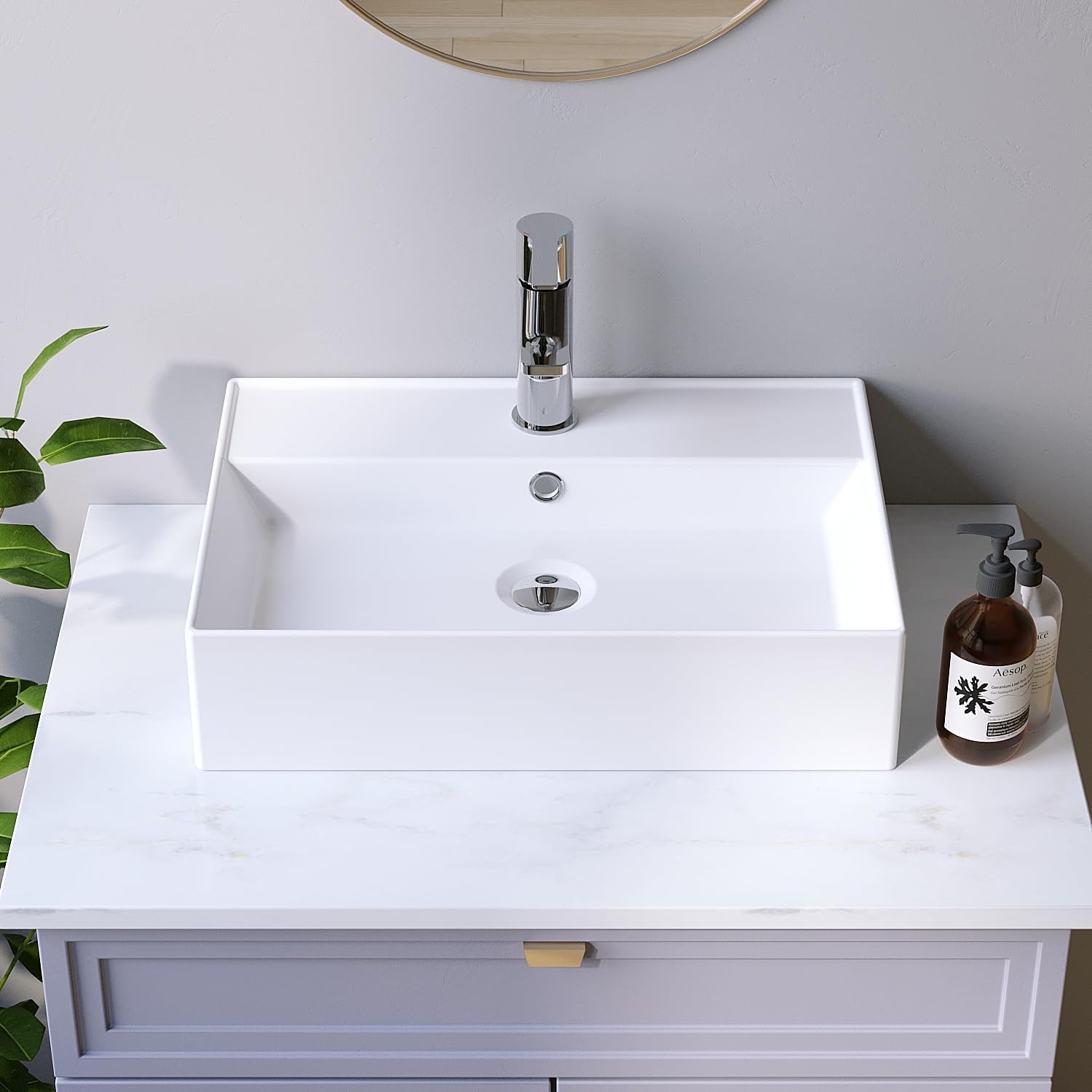 - 【Praktisches Design】Das Waschbecken zeichnet sich durch ein klares, eckiges Design mit einem schlanken Innenbecken aus. Der Rand geht in eine Hahnlochbank über und bietet viel Platz für einen Seifenspender oder Dekoartikel.