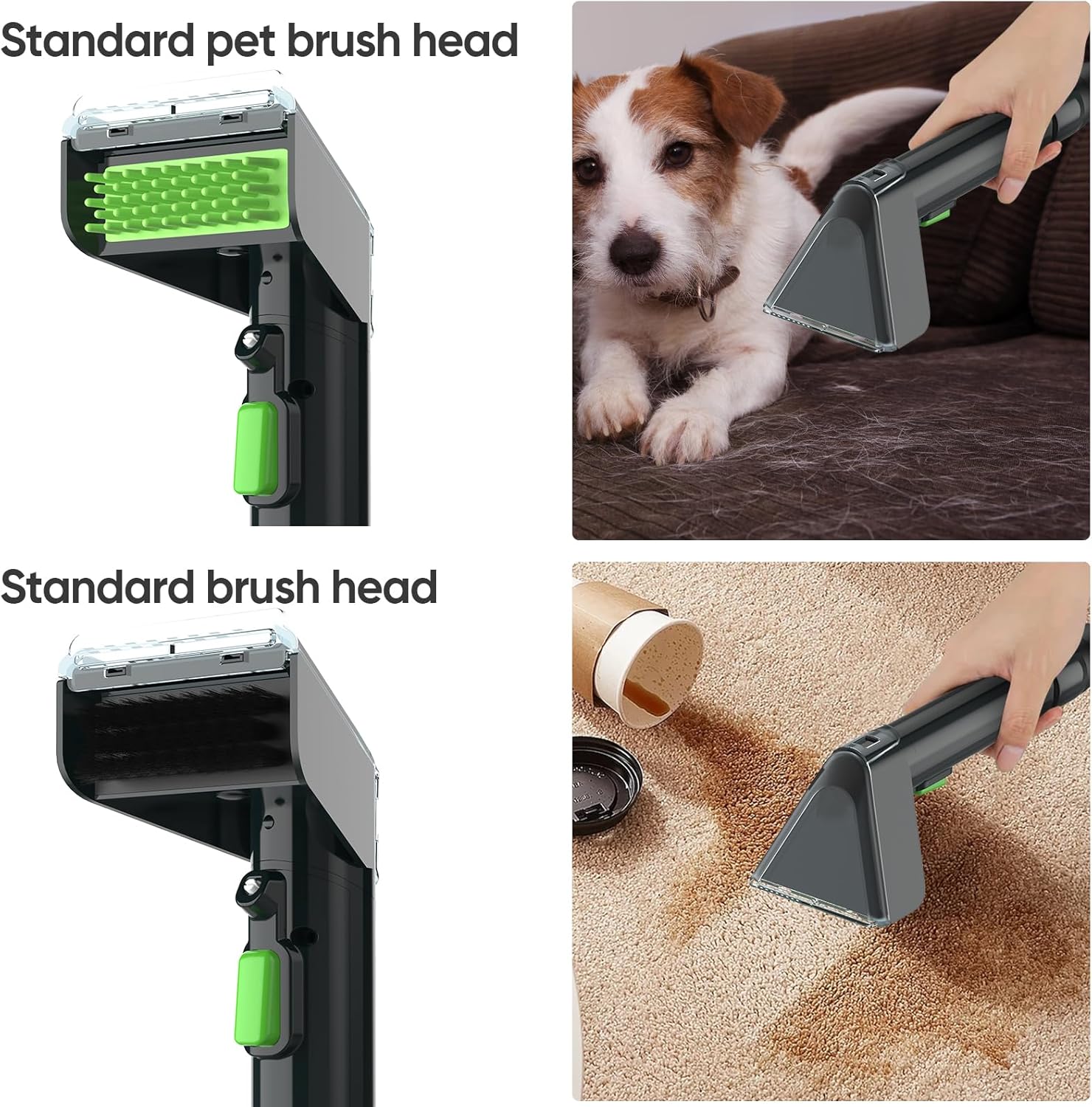 - 【Drei Reinigungsbürstenköpfe】Teppichreiniger waschsauger ist serienmässig mit drei professionellen Bürstenköpfen ausgestattet: dem Selbstreinigungskopf für Teppiche, dem Standardbürstenkopf für Stoffsofas und dem Standardbürstenkopf für