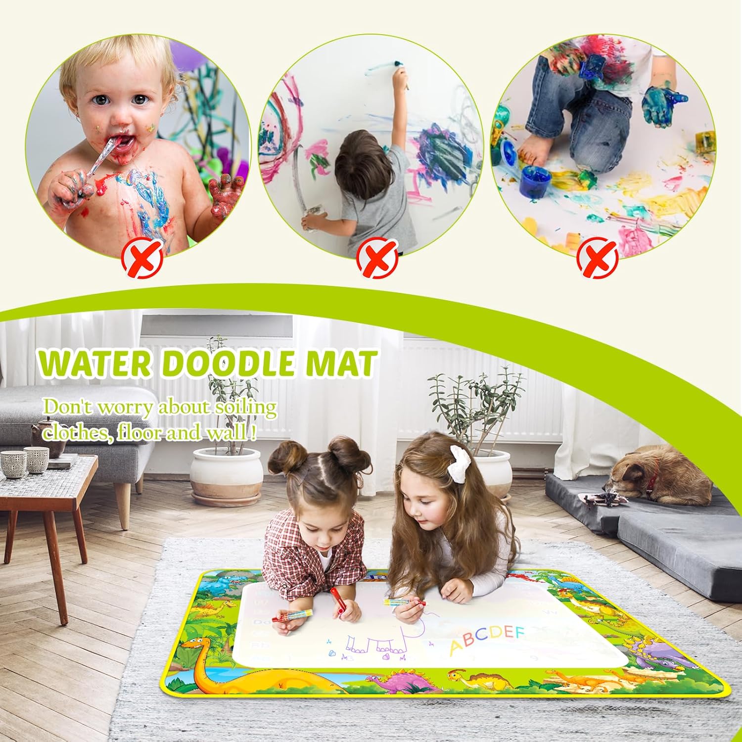 - đŒăSicher, leicht zu reinigen und fleckenfreiă Die Aqua-Malmatte ist sauber und sicher fĂŒr Kinder und ihre wasserfeste RĂŒckseite macht die HĂ€nde Ihres Kindes nicht schmutzig. Das farbfreie, ungiftige und umweltfreundliche Aqua Magic Zeichnen