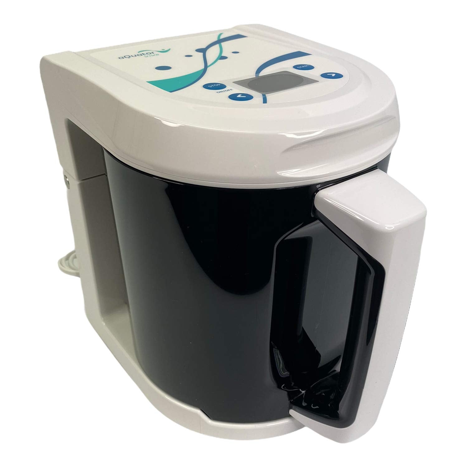 - Handliches Auftischgerät / Inhalt des Behälters: 3 Liter / Der Wasserionisator aQuator Vivo Silver wird mit der Tastatur oben auf dem Deckel gesteuert. Nach der Elektrolyse schaltet sich das Gerät automatisch ab und Sie hören ein Tonsignal.