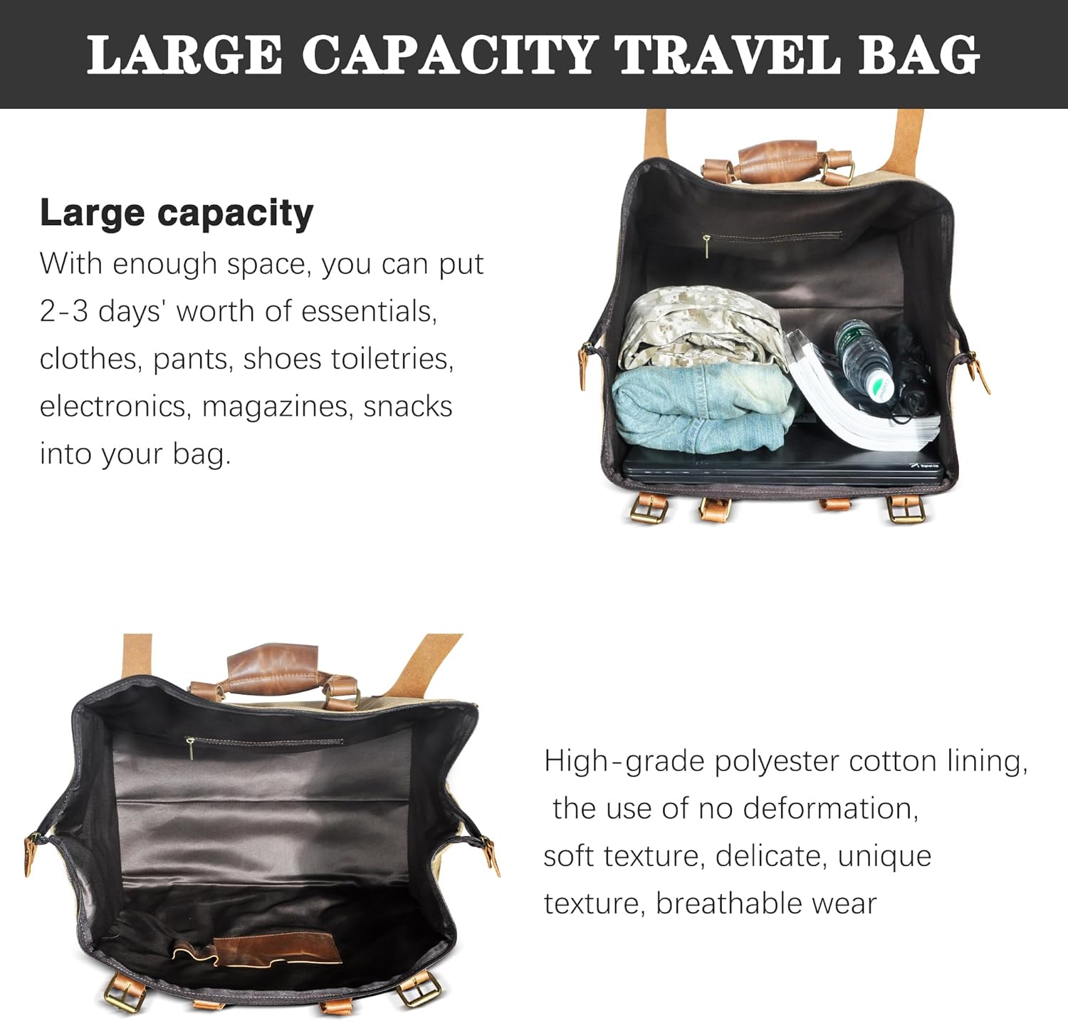 • 【Hochwertiges Material】Diese Reisetasche besteht aus hochwertigem echtem verrücktem Pferdeleder und wasserdichtem langlebigem Canvas, Bodennieten.Die Top-Qualität sorgt für die lange Haltbarkeit.Die hochdichte Leinwand wird nicht reissen oder