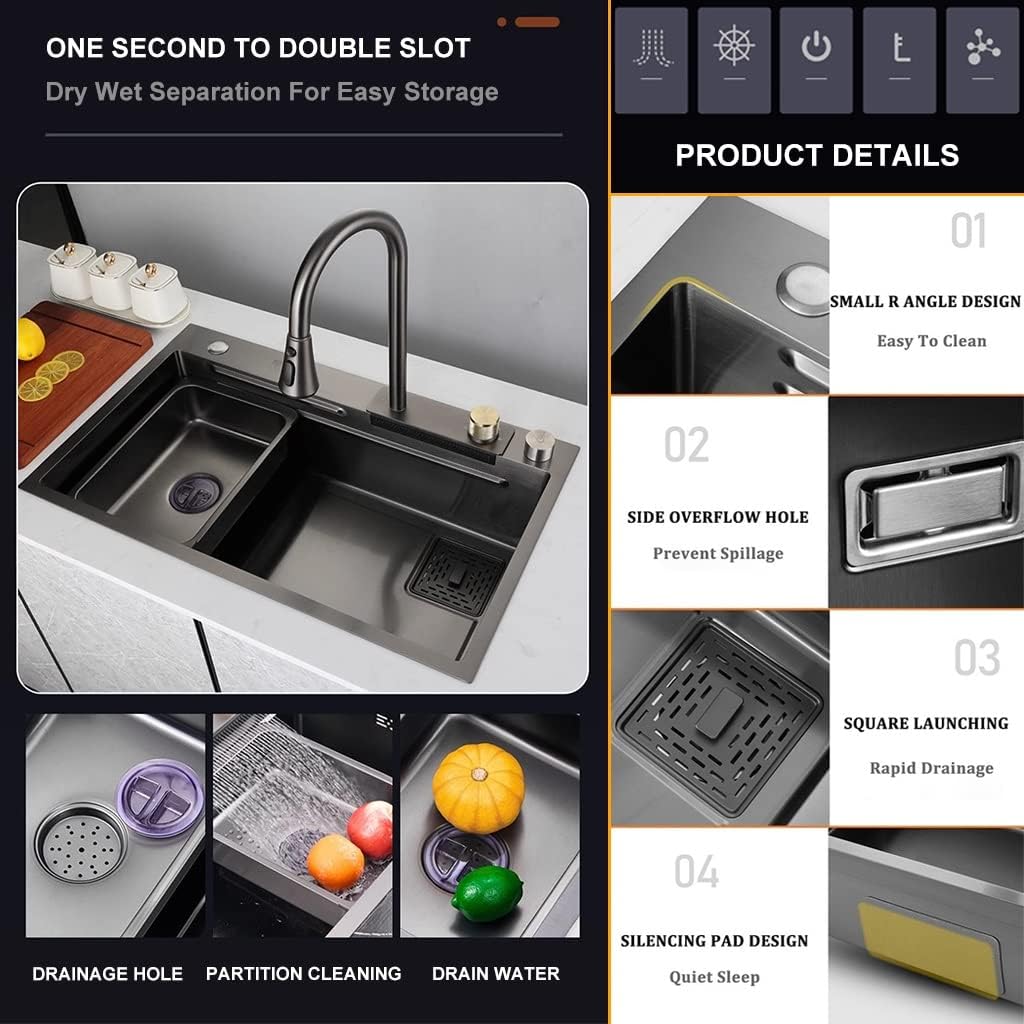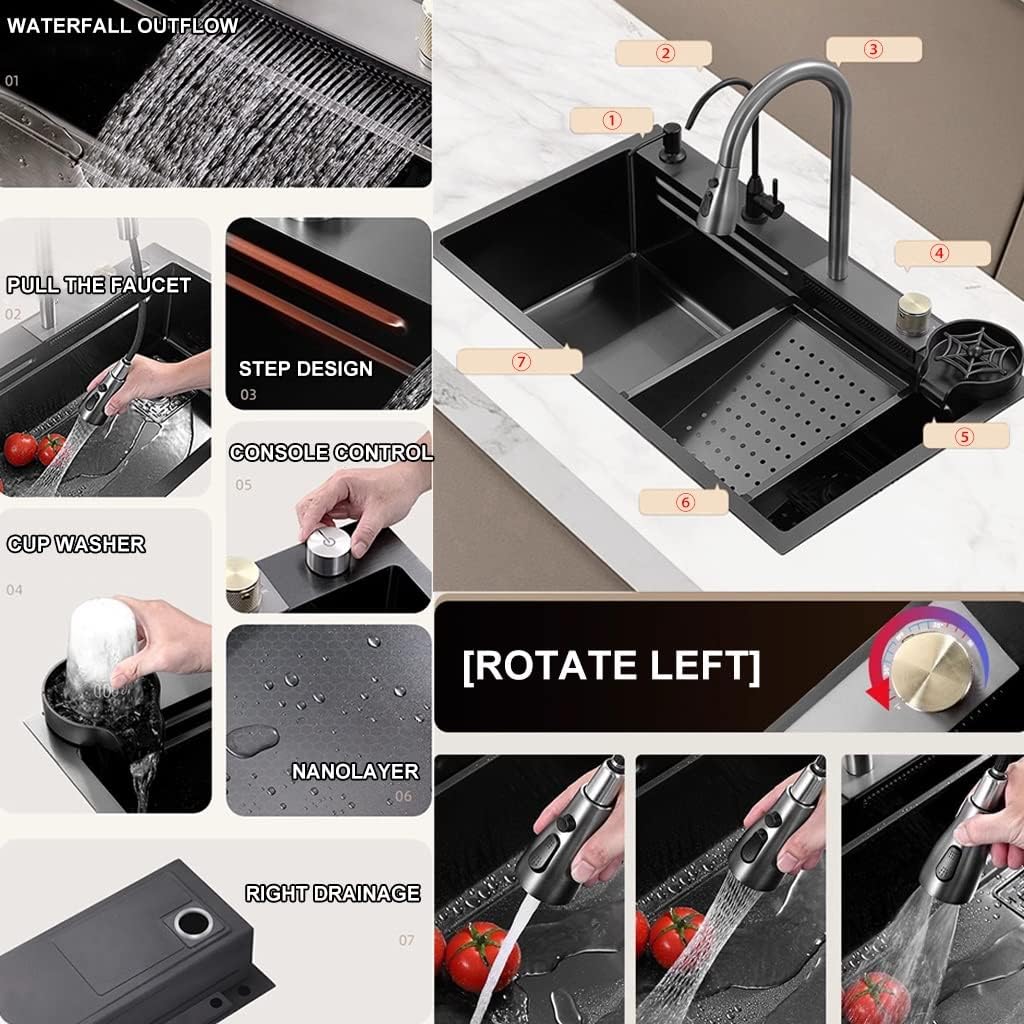 - 🏠 【Komplettes Zubehörset】Die Spüle kommt mit einem Wasserfilterhahn, einer Becherwasser, einem Schneidebrett, einem Gemüsekorb und einem Ablaufkorb, wodurch es einfach ist, zu spülen, zu hacken und abzulassen.Diese Spüle ist 100% hygienisch