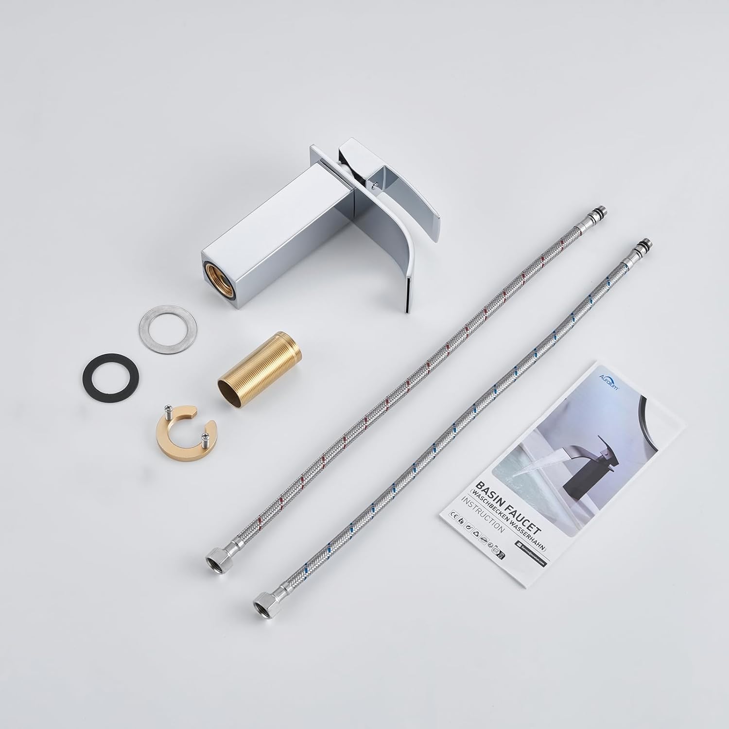 - SCHNELLE INSTALLATION: Die Waschtischarmatur hoch wird mit zwei 3/8 P-EX-Zulaufschläuchen aus lebensmittelechtem Material und allem für die Installation erforderlichen Zubehör geliefert, das schnell und ohne Klempner installiert werden kann.