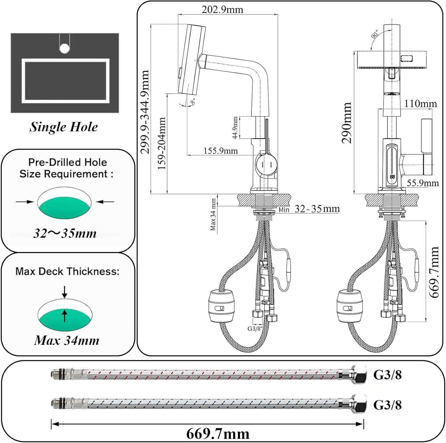 - 【Temperatur in Echtzeit Sichtbar】 Mischbatterie waschbecken mit Temperaturanzeige, fortschrittliche Wasserkraft-Technologie erfordert keine externe Stromversorgung, um eine Echtzeit-Anzeige der Temperatur der Mischbatterie zu realisieren. Mit drei