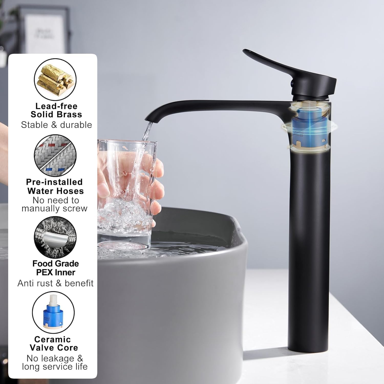 - Schlank und modern: Hoher Armaturenkörper mit modernem Design und mattschwarzem Finish, kompatibel mit Küche/Bad Waschbecken Waschbecken, Bar Waschbecken, einfach zu warten.