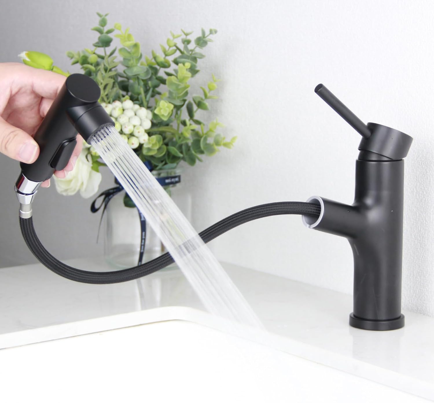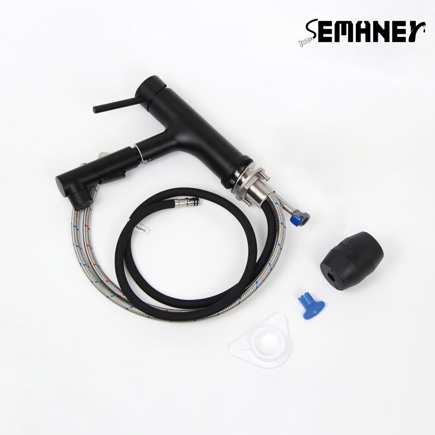 - Flexibles Design: Diese Waschtischarmatur schwarz wird mit einem herausziehbaren Duschkopf und einem Gegengewicht geliefert. Sie können den Brausekopf zum Shampoonieren oder Reinigen eines Waschbeckens usw. verwenden. Wenn Sie den Brausekopf loslassen,