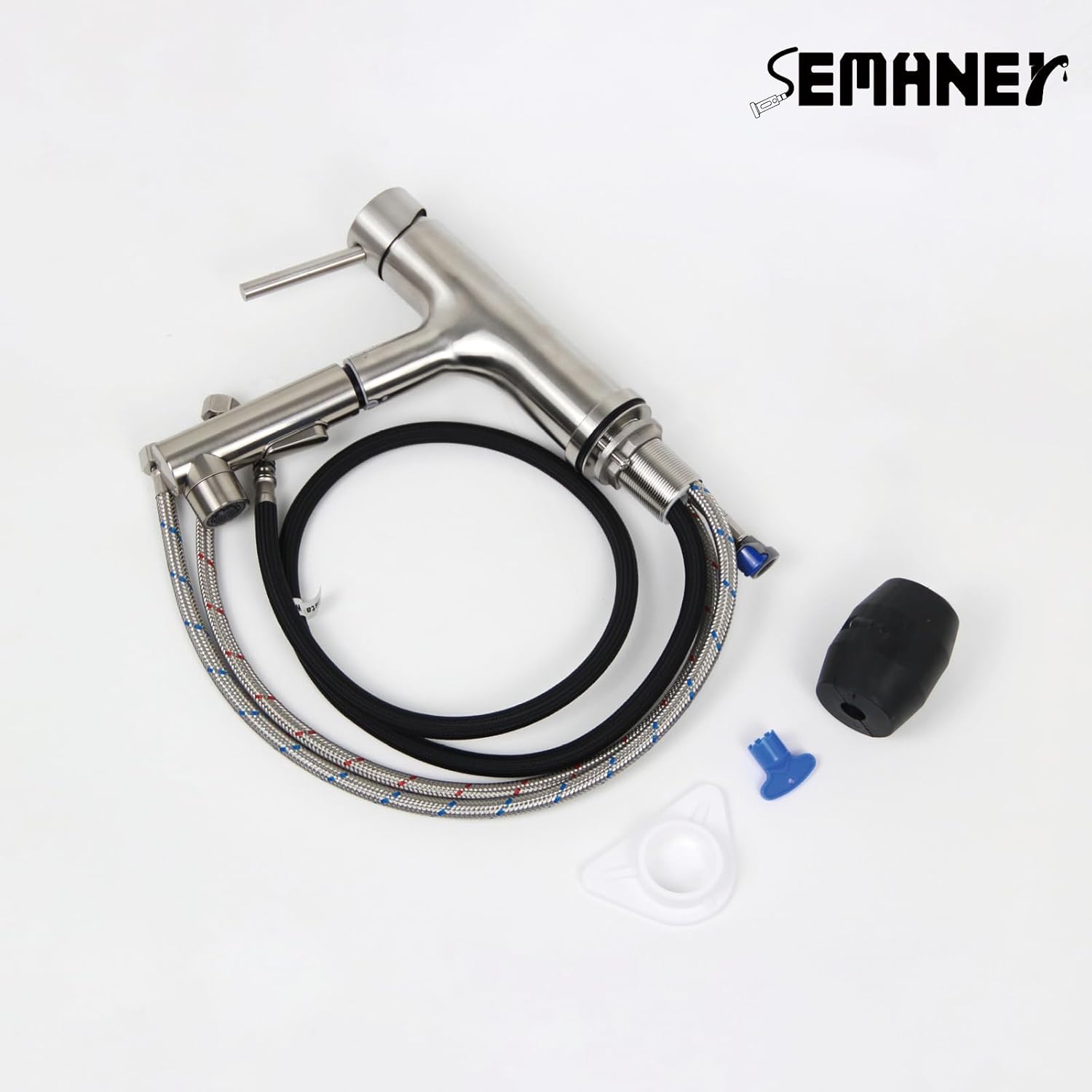 - Flexibles Design: Diese Badarmatur Waschbecken wird mit einem herausziehbaren Duschkopf und einem Gegengewicht geliefert. Sie können den Brausekopf zum Shampoonieren oder Reinigen eines Waschbeckens usw. verwenden. Wenn Sie den Brausekopf loslassen,
